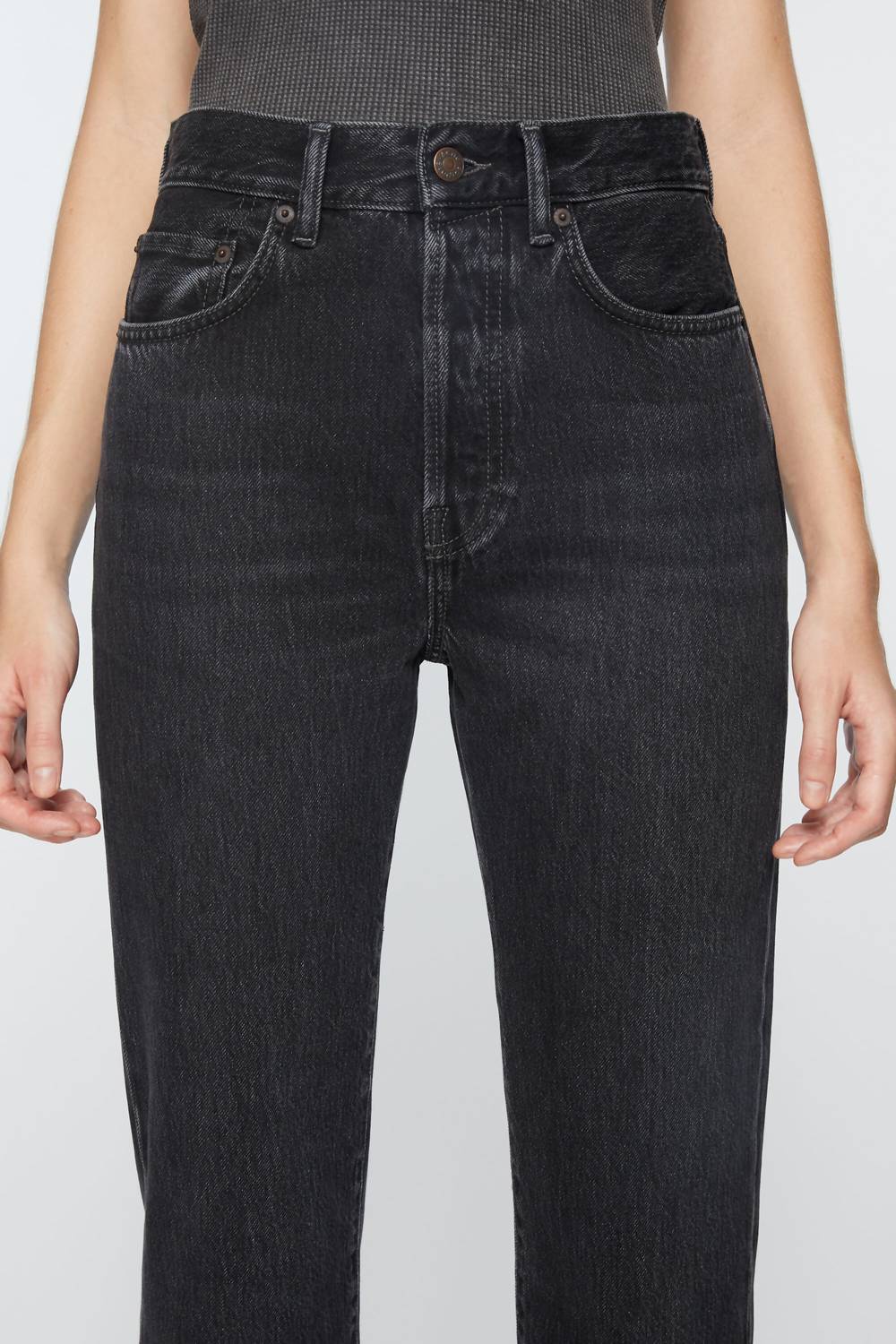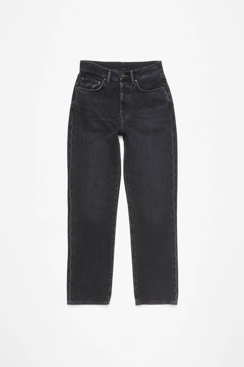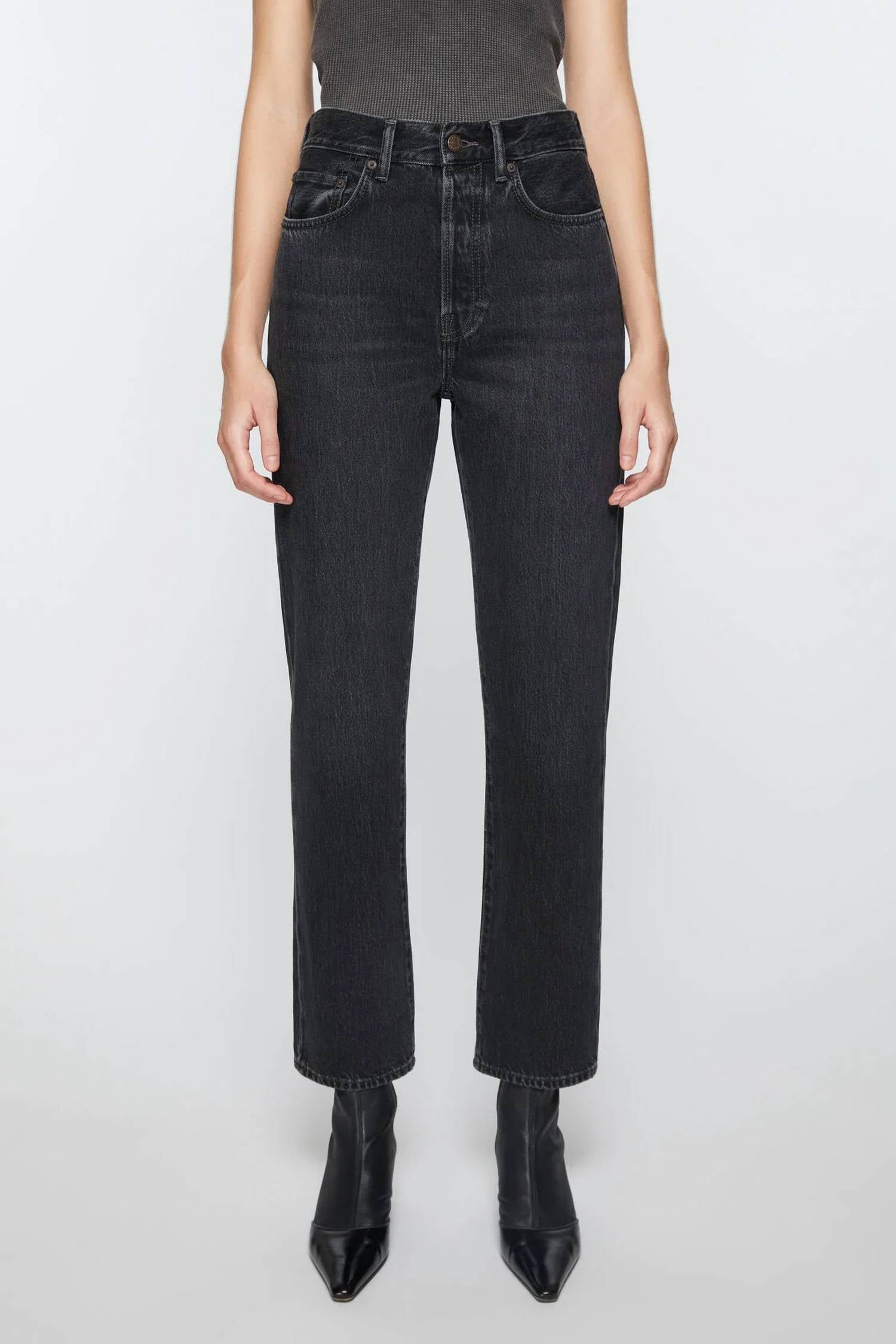 High-waist is here to stay and we especially love this style. Introducing the Mece Vintage High Waist Tapered Jeans by Acne Studios, crafted for a high-rise fit with a regular, straight leg silhouette in a chic cropped length. These jeans are made from 100% organically grown cotton denim in a black wash, perfect for a vintage fall evening look. Featuring a solid pattern with a high-waist rise, a five-pocket construction, and a secure button fly. Made with a zip closure for ease of wear and designed with a 30" inseam, these jeans require machine washing and should be laid flat to dry.