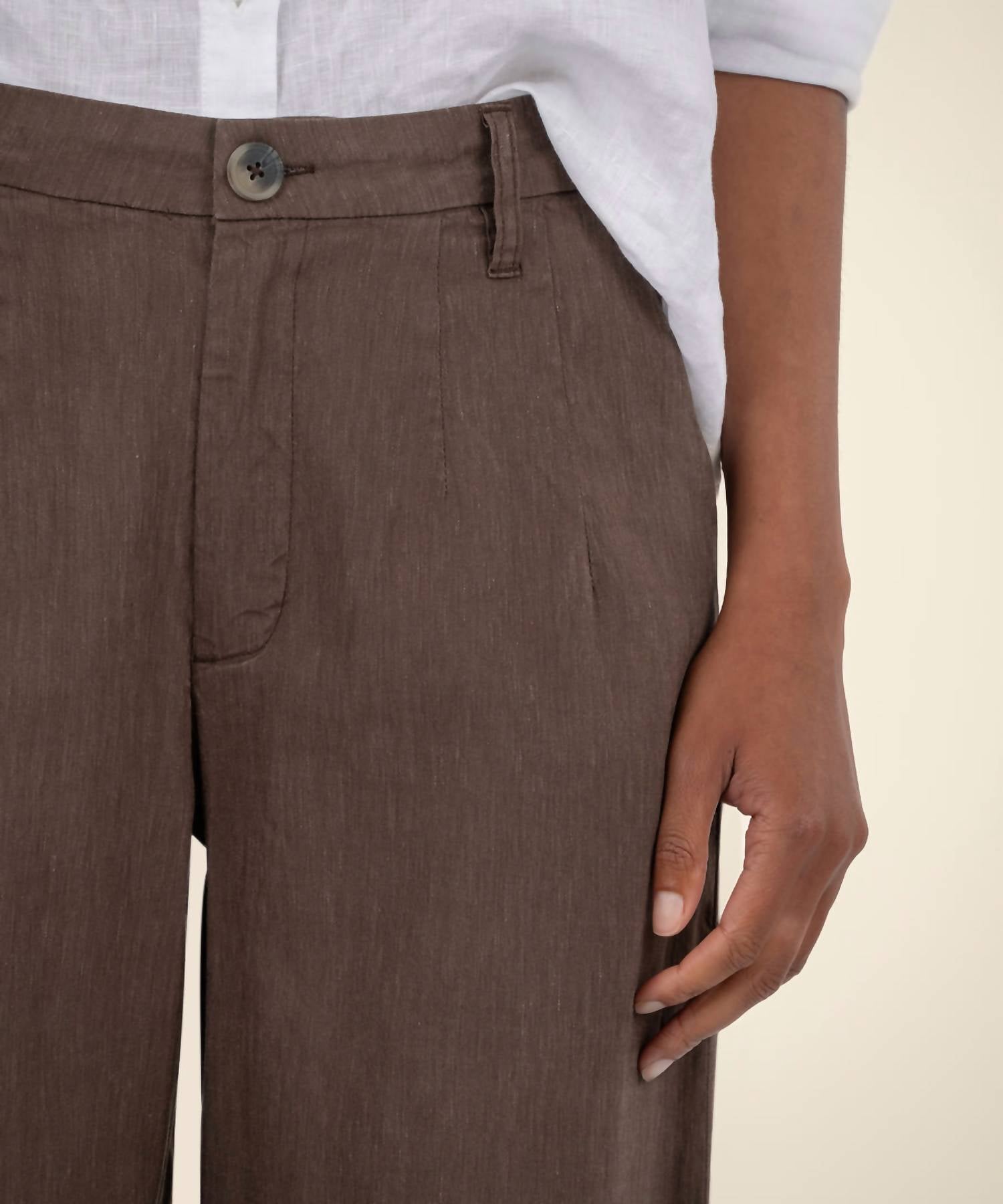 High-waist is here to stay and we especially love this style. Introducing the Ryan Linen High Rise Wide Straight Leg Pants by KUT FROM THE KLOTH, a chic addition to your summer wardrobe. These pants feature a high-rise waist and a relaxed wide-leg fit, complemented by a textured pattern in a versatile taupe hue. Made from a soft linen blend, they provide a fluid drape that's both sophisticated and comfortable. Closure: Button closure. Care: Hand wash and line dry for best results. This stylish piece also includes practical pockets and is effortlessly polished for any occasion.