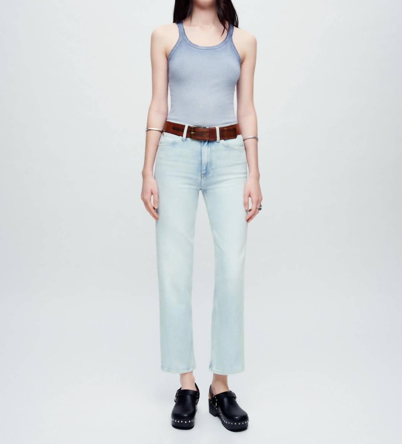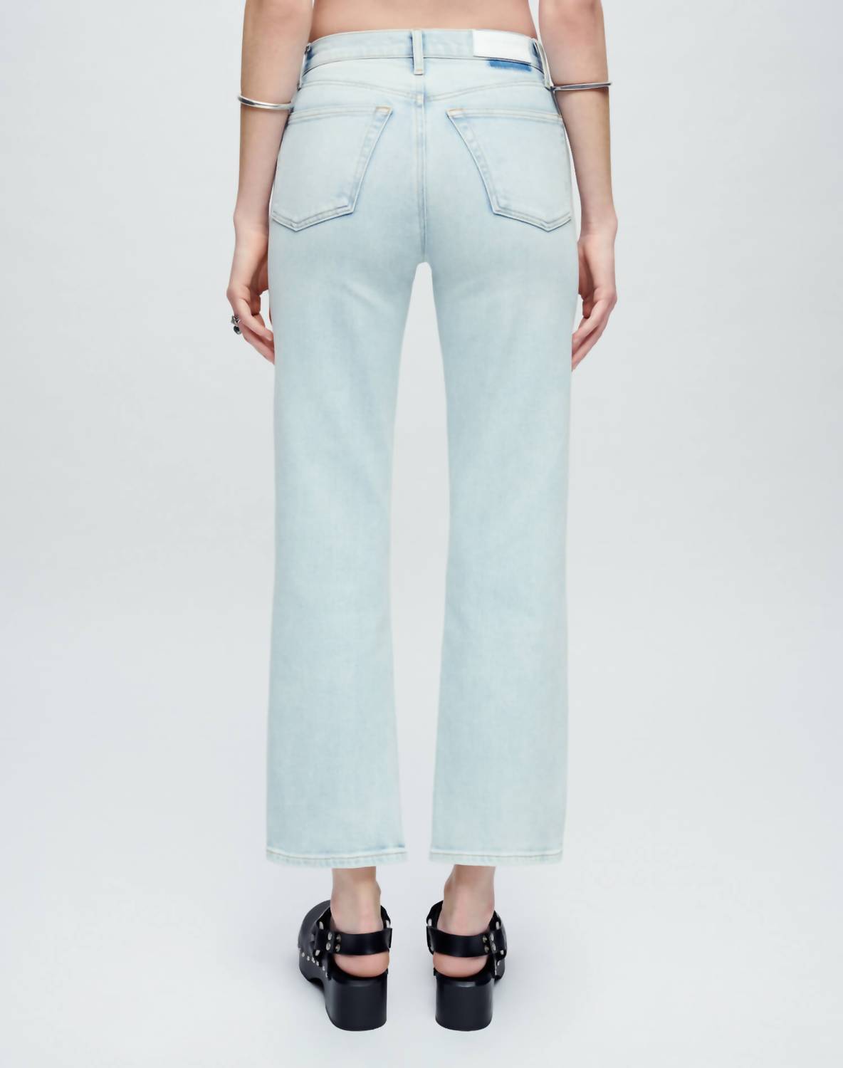 Fit to perfection, we love these high-waist jeans and you will too. Introducing the 70s Crop Boot Cut High Rise Jeans by RE/DONE in Vapor Wave, capturing the essence of classic 70s style with a modern twist. These jeans offer a high rise fit that sits just below the natural waist, featuring a cropped 27" inseam and slim thigh fit with a mini bootcut leg and 17" leg opening. Made from a comfort stretch cotton blend comprising 76% Cotton, 20% PSRCO, 3% EME, and 1% Elastane, they close effortlessly with a zipper. Care for them with machine wash cold and tumble dry low, perfect for maintaining their light wash and ready for any travel or spring occasion.