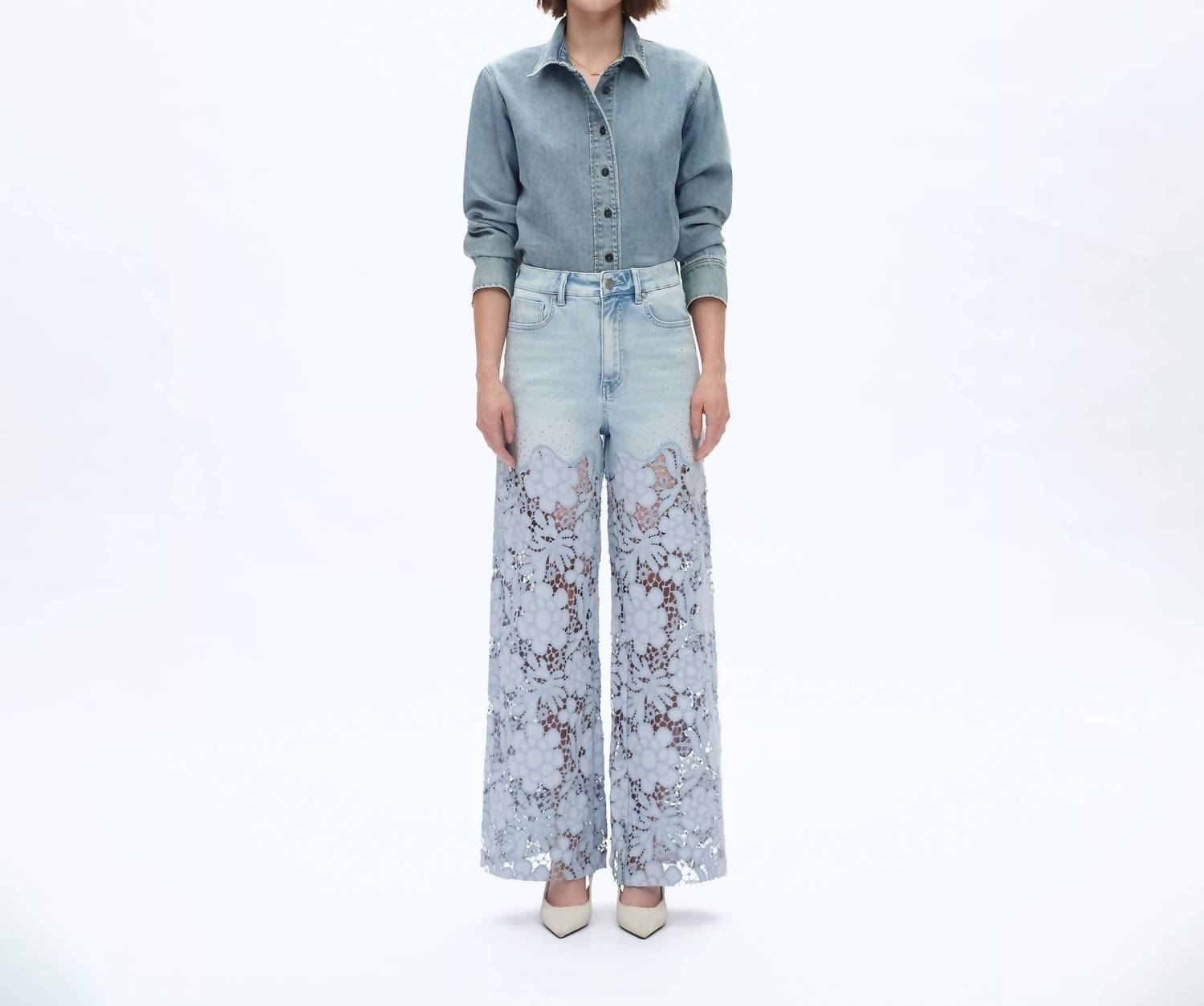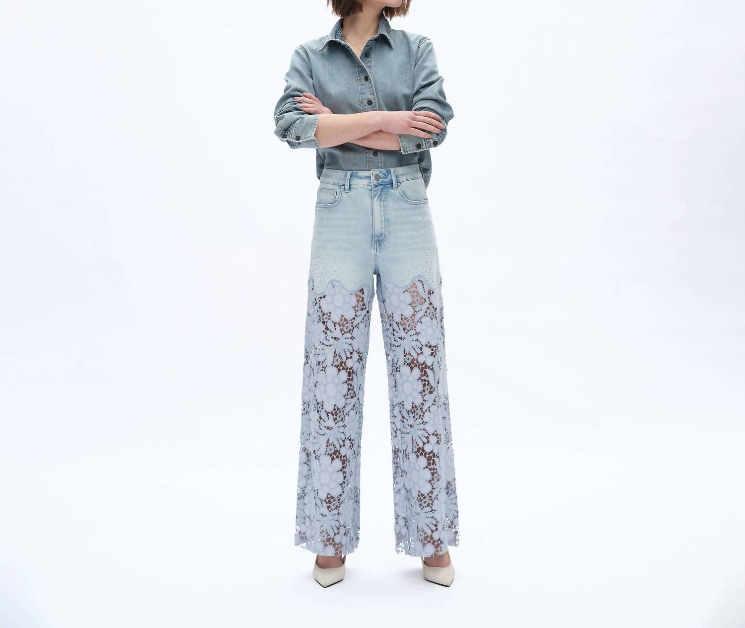 Bayeas - Rhinestone Patchwork Wide Leg Jeans