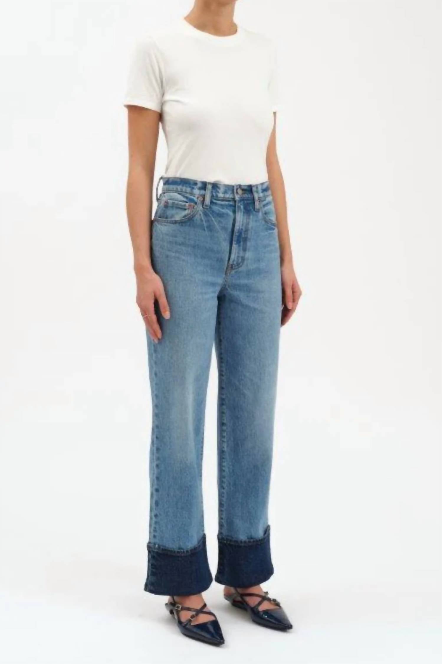 Tuck your favorite tee into these high-waist jeans for a more casual-cool feel. Discover the Eastside High Rise Jean by DAZE, crafted for a relaxed yet stylish fit in the Plunge color. These straight-leg jeans are composed of a durable cotton blend of 99% Cotton and 1% Spandex, featuring a subtle two-tone cuff detail. Designed for comfort, they offer a 12-inch high rise and a 29-inch inseam, enhanced with a classic button closure. Care instructions ensure easy maintenance with a machine wash routine, perfect for your spring and vacation wardrobe.