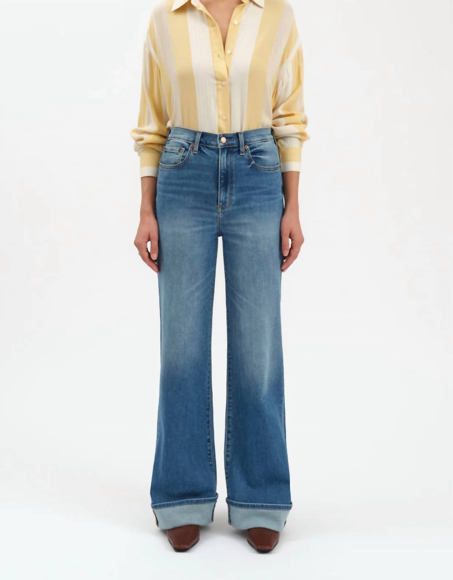Fit to perfection, we love these high-waist jeans and you will too. Introducing the Far Out High Rise Jeans by DAZE, a versatile denim staple in the flattering Big Break color. These high-rise jeans boast a regular fit and flared leg style, crafted from a cotton blend of 98% Cotton and 2% Spandex for all-day comfort and flexibility. The medium wash, solid pattern, and durable construction ensure they're perfect for a wide range of occasions. Closure: Button closure. Care: Machine wash. With a 12" rise and a 31.5" inseam, these jeans are a timeless addition to your wardrobe, offering both style and practicality.