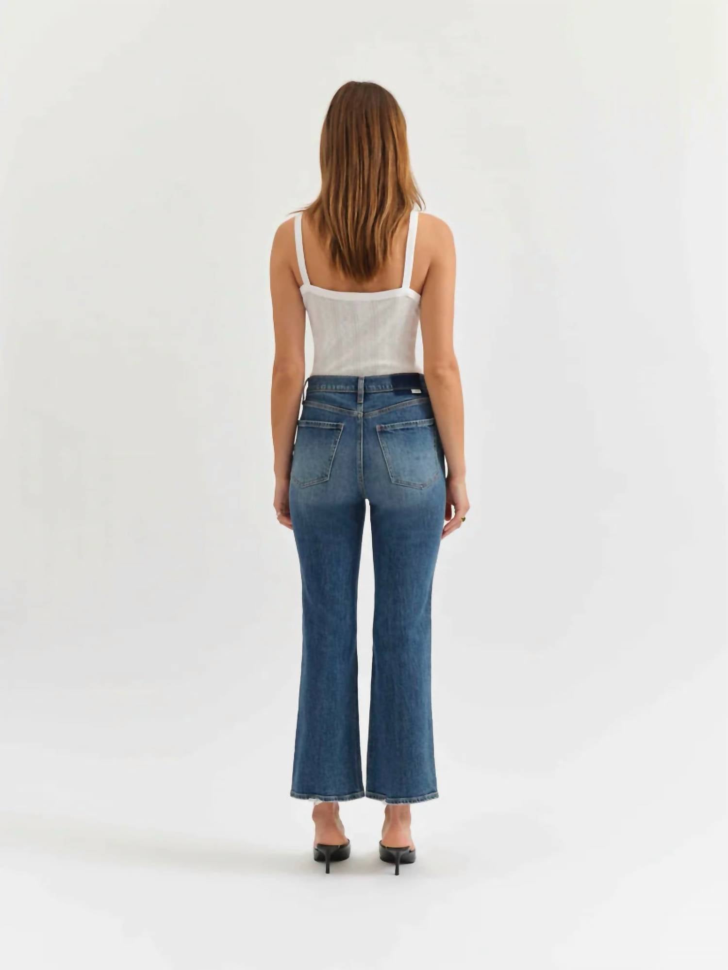 High-waist is here to stay and we especially love this style. Experience effortless style with the Soho High Rise Jeans by DAZE, crafted in a Rush Hour colorway for a unique, medium wash look. These women's jeans feature a relaxed fit with a flared leg and a tailored front crease for a structured yet comfortable appearance. Made from a cotton blend composition that includes 69% Cotton, 30% Organic Cotton, and 1% Spandex, they boast a comfort stretch that conforms beautifully to your shape. With a high rise of 11.75 inches and an ankle-grazing 28.5-inch inseam, these jeans include pockets and a button closure for practicality, all while being machine washable for easy care.