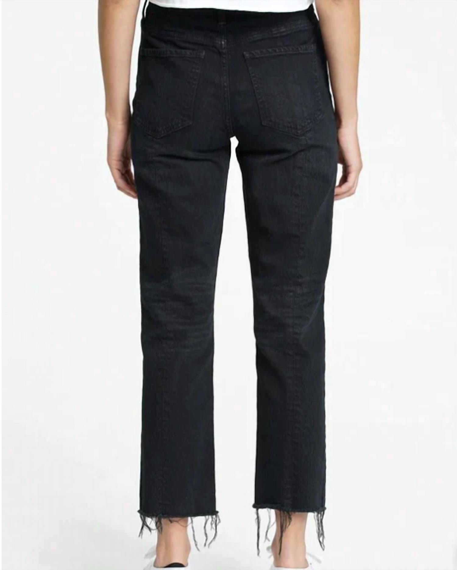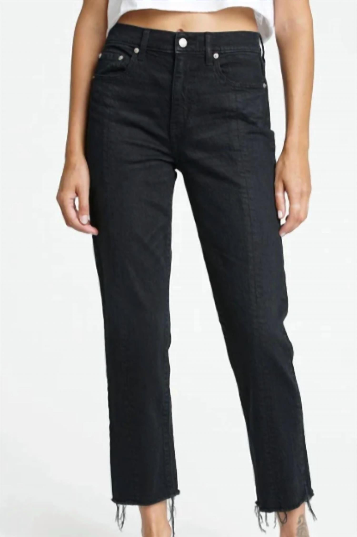 High-waist is here to stay and we especially love this style. Introducing "Your Favorite Mom Jeans" by DAZE in Curfew Black, a must-have for every wardrobe. These high-rise jeans feature a flattering straight leg style with a slightly cropped, raw hem, and distressed detailing for a trendy look. Made from denim, they ensure a mostly rigid fit that yields to your body in all the right ways, with a button closure for secure wear. Imported and easy to care for with machine wash cold and tumble dry instructions, these jeans have an 11" rise, a 27" inseam, and a 14 1/2" leg opening, perfect for pairing with your favorite sneakers or booties.