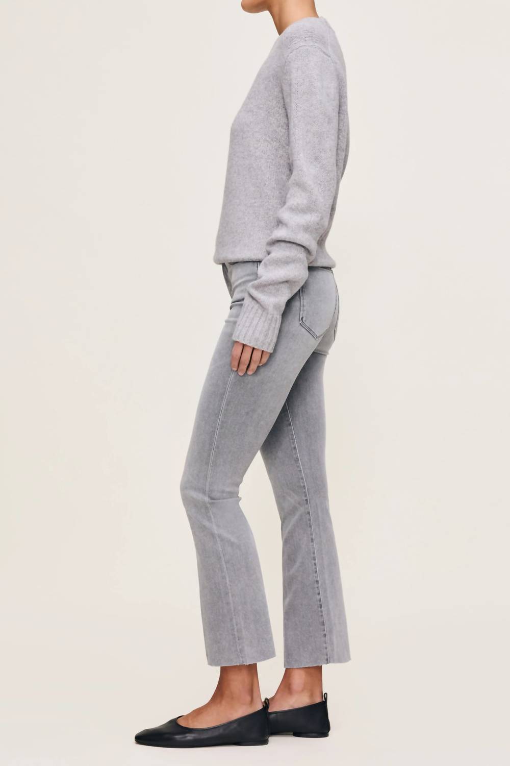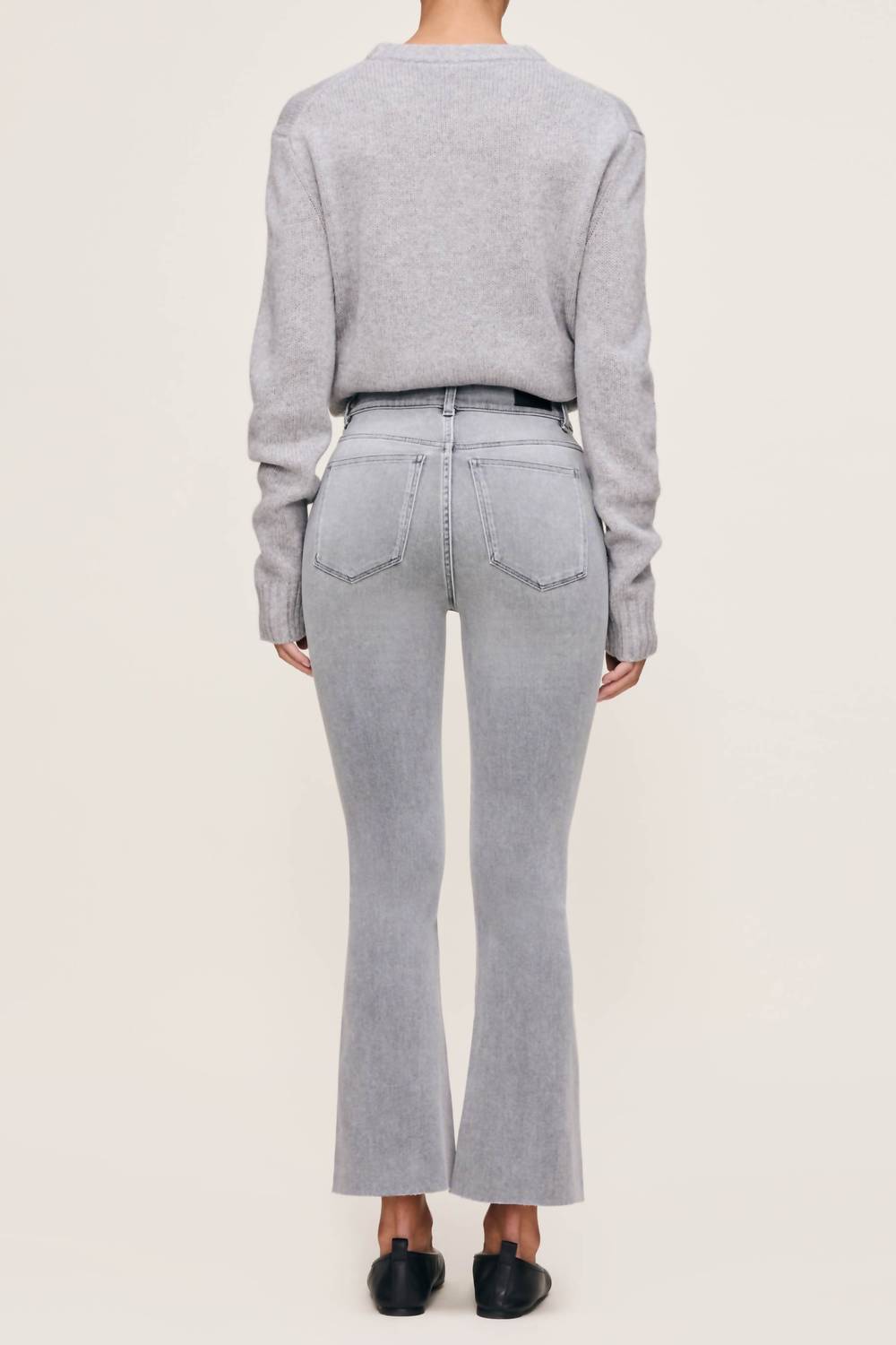 Tuck your favorite tee into these high-waist jeans for a more casual-cool feel. Introducing the Bridget Cropped Bootcut Jean by DL1961, a stylish addition for any wardrobe seeking a touch of faded light grey in soft stretch denim. This high-rise jean boasts a relaxed fit and features a clean hem, complemented by tonal stitching and silver hardware for a polished look. Crafted from 62% Tencel Lyocell, 23% Cotton, 14% Elastrell-P, and 1% Lycra, it ensures comfort with breathable botanic fibers and elastane technology. With measurements of a 10" rise, 27" inseam, and 17.25" leg opening, these jeans are completed with a button closure and are easy to care for with machine wash instructions.
