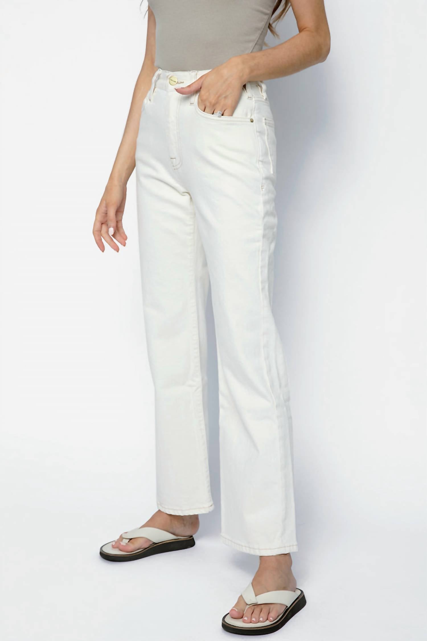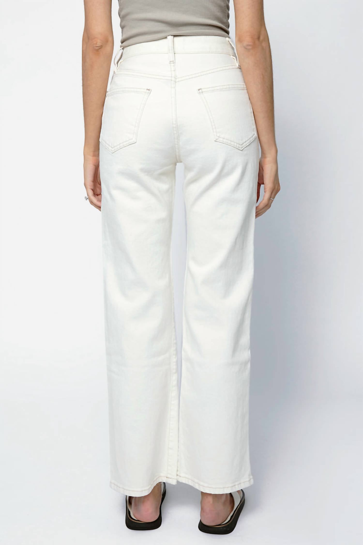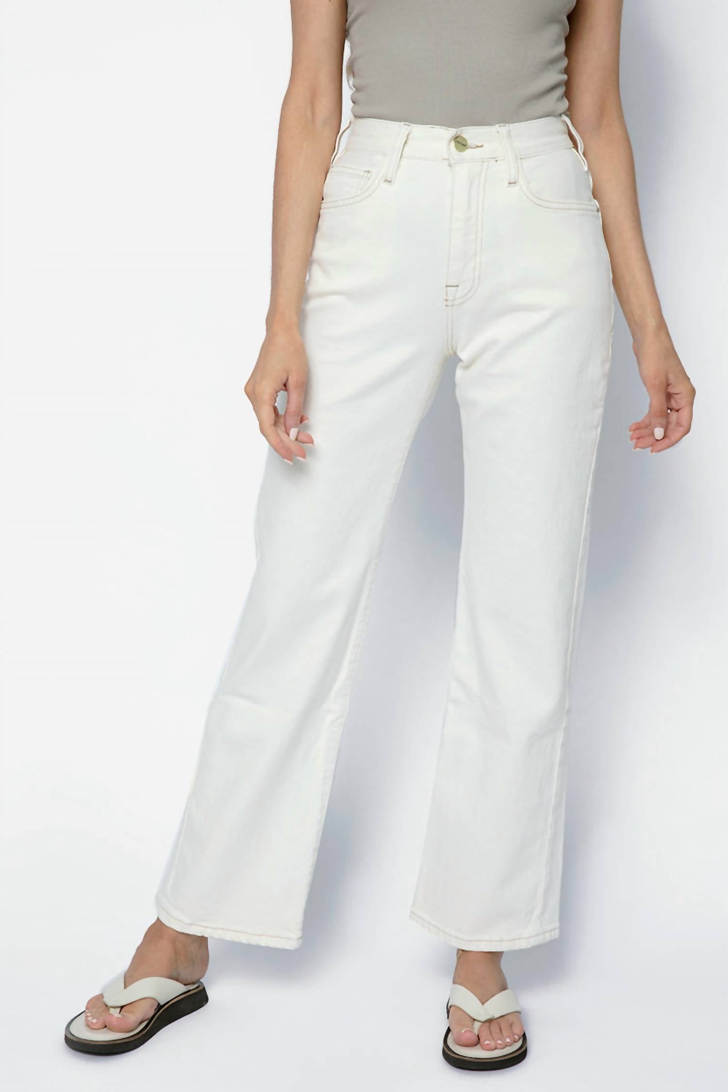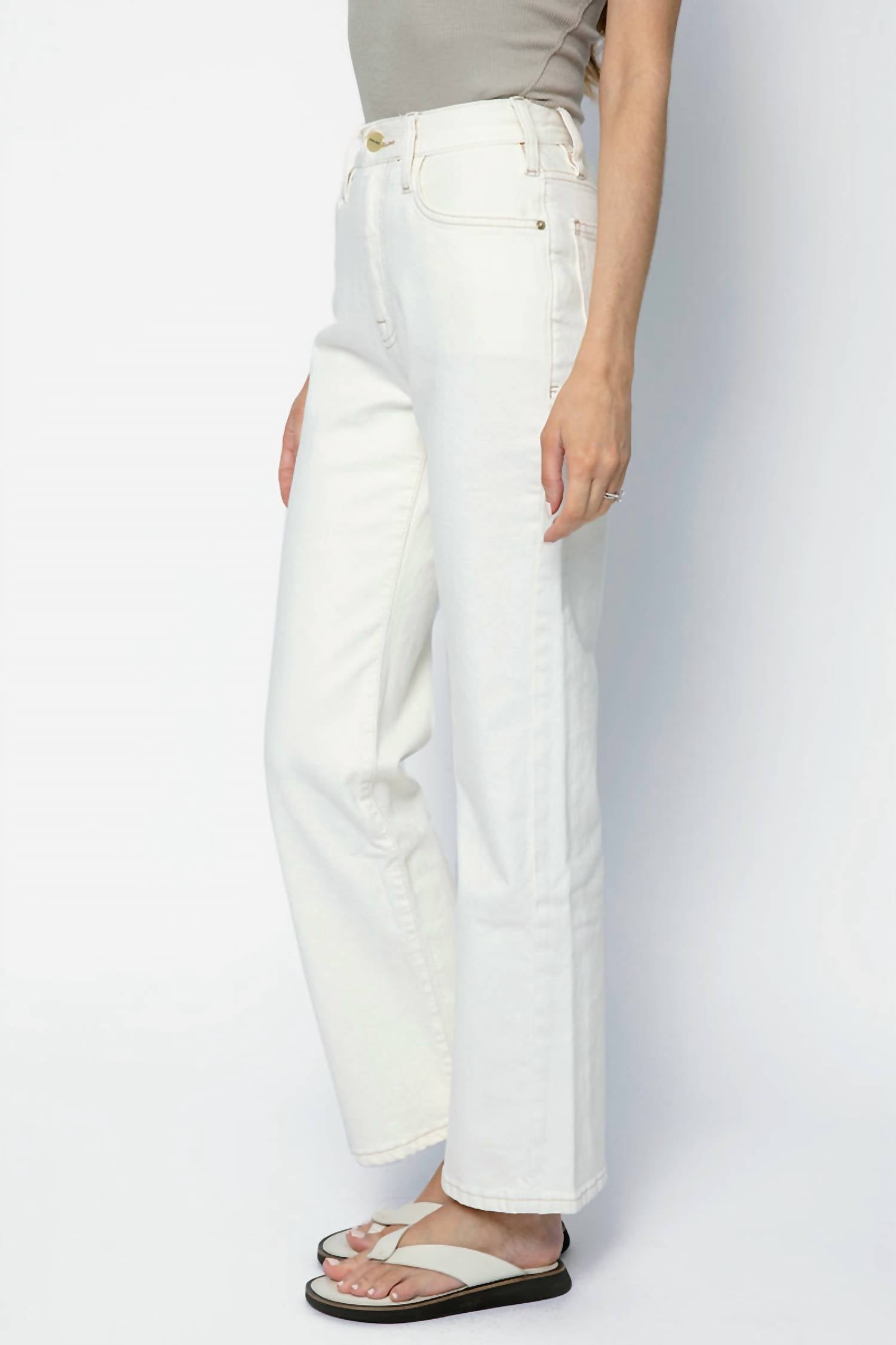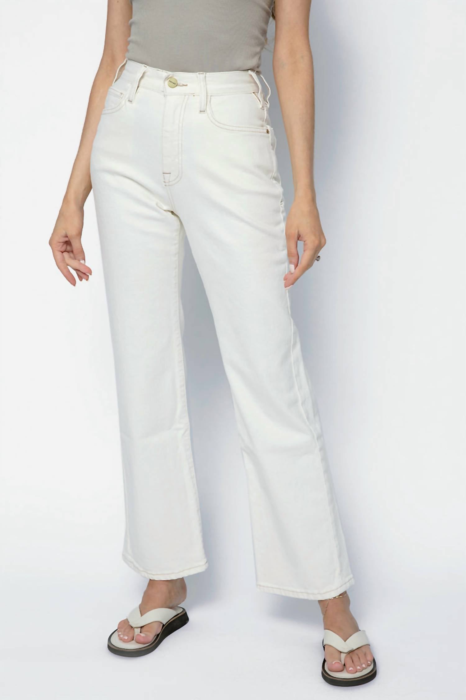 Tuck your favorite tee into these high-waist jeans for a more casual-cool feel. Elevate your summer wardrobe with the Le Pixie Jane Jean by FRAME, meticulously crafted in the USA. These ultra-high-rise jeans are composed of 99% Cotton and 1% Elastane, offering comfort with a slight stretch. Designed with a button closure, this solid ecru piece features a nostalgic appeal, framed by wide legs that fit relaxed through the thighs. To maintain their minimalist charm, machine wash cold.