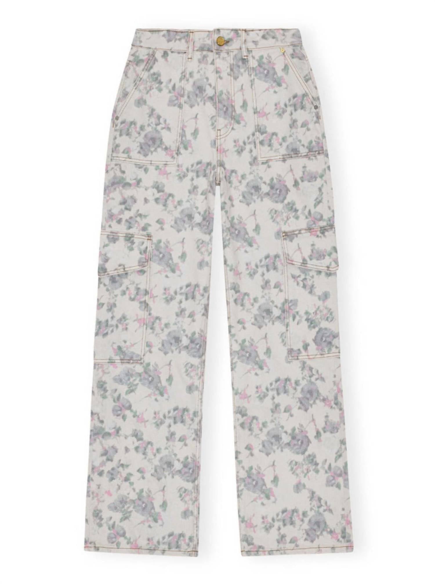 High-waist is here to stay and we especially love this style. Meet the Angi Floral Printed Cargo Jean by GANNI, a stylish choice for your evening events this spring. Expertly crafted in Turkey from 100% organic cotton denim, these wide-leg jeans highlight a high-rise, relaxed fit with on-trend vintage vibes. They feature a zip closure, belt loops, and multiple pockets, including cargo pockets on the lower legs and the distinctive GANNI logo on the back pocket. In a unique tofu floral pattern, these jeans promise both comfort and style, easily maintained with machine wash cold and line dry care instructions.