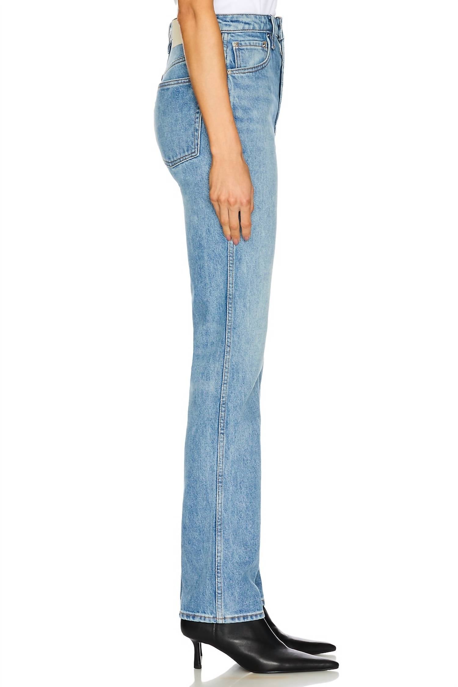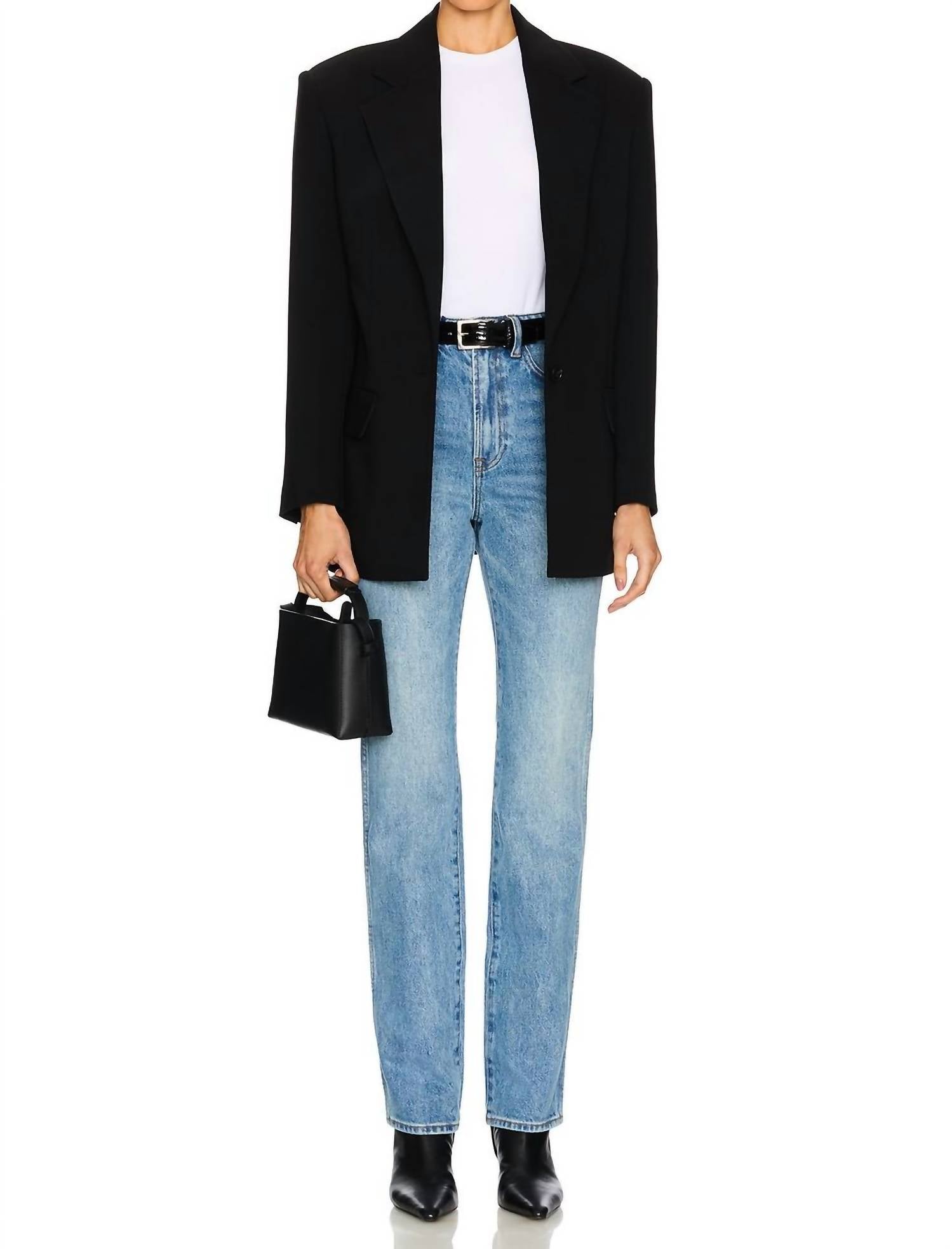 Tuck your favorite tee into these high-waist jeans for a more casual-cool feel. Introducing the Sara Super High Rise Slim Straight Jeans by GRLFRND, designed for the style-savvy woman in a sophisticated Lenox Hill medium wash. These jeans offer a flattering high-rise fit with a slim leg style crafted from 100% heavyweight rigid denim for a vintage allure. Featuring a zip fly with button closure and a classic 5-pocket design, they measure an inseam of 33 inches and a rise of 11.75 inches. Made in the USA with imported materials, these jeans are machine washable and can be tumble dried, making them perfect for fall travel and everyday elegance.