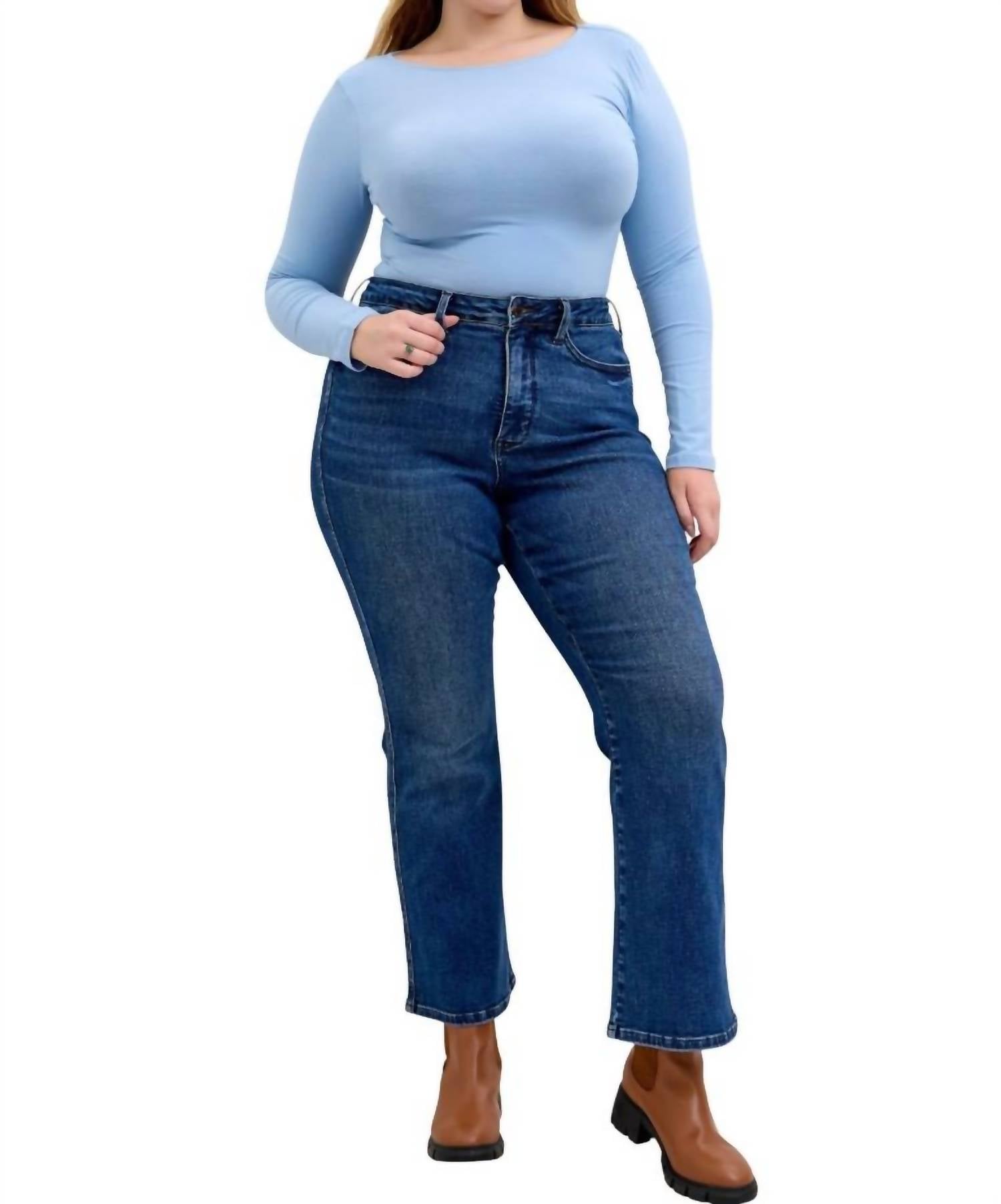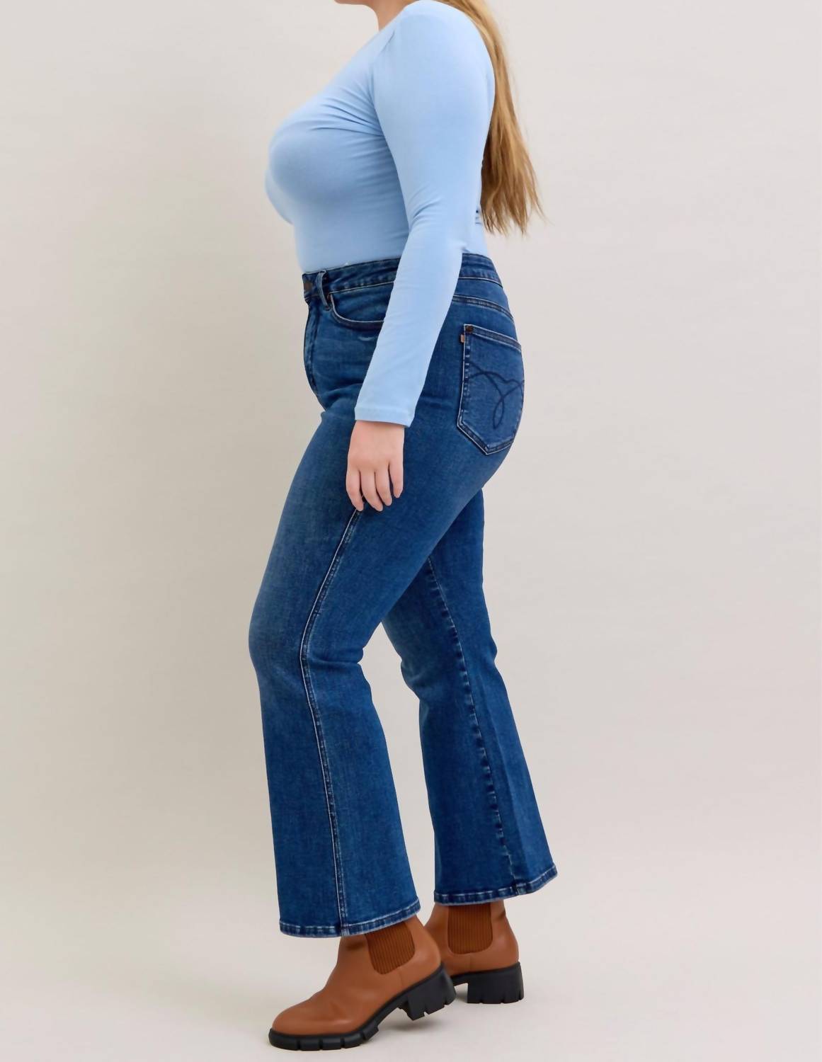 Fit to perfection, we love these high-waist jeans and you will too. Discover the Judy Blue High Waist Tummy Control Bootcut Jeans in a medium wash blue, a perfect blend of style and comfort for every occasion. These jeans boast a high-rise waist with a tummy control panel, ensuring a flattering fit for all-day wear. Made from a cotton blend with a slim bootcut leg style, each pair includes pockets for practicality and features a classic button closure. With a short 30" inseam and a rise of 10.75", these jeans can be machine washed and tumble dried for easy care, making them ideal for both casual and dressy settings. Suitable for regular and plus sizes, they are your new preppy and vacation-ready favorite, just in time for Mother's Day.