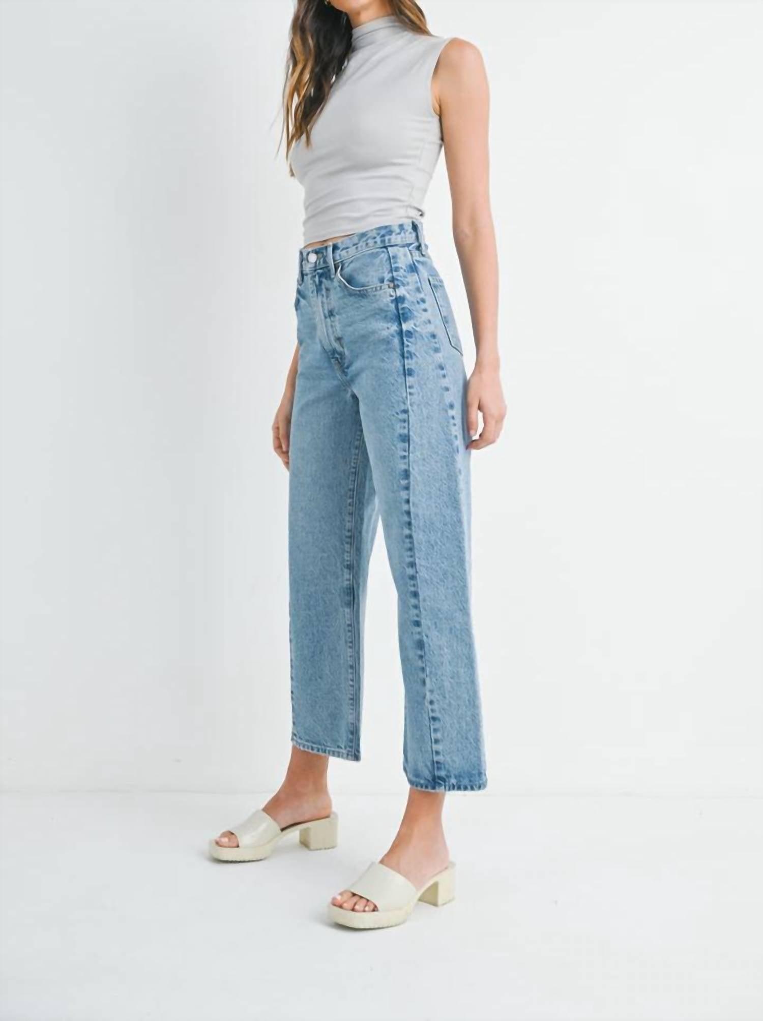 High-waist is here to stay and we especially love this style. Elevate your casual wardrobe with the Twist Barrel Jean by JUST BLACK DENIM, crafted from 100% cotton for a high-quality feel. These medium denim, high-rise jeans feature a relaxed fit with a 12” rise and 27” inseam, making them both trendy and comfortable. Made in the USA, the jeans come with a playful twist detail and a button closure, ensuring a flattering silhouette. Care for them with a machine wash and lay flat to dry for best results.