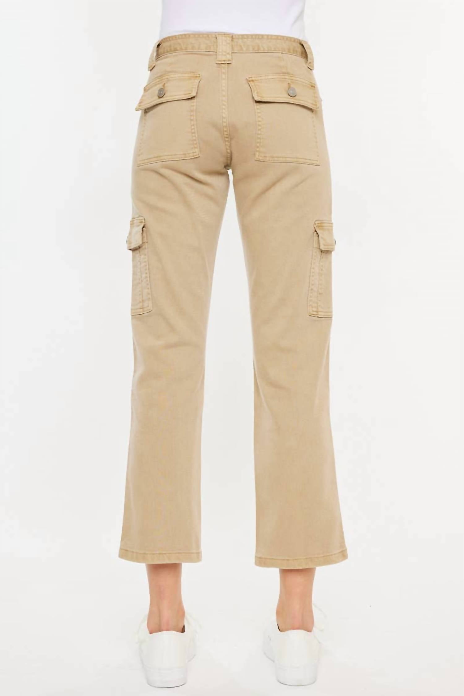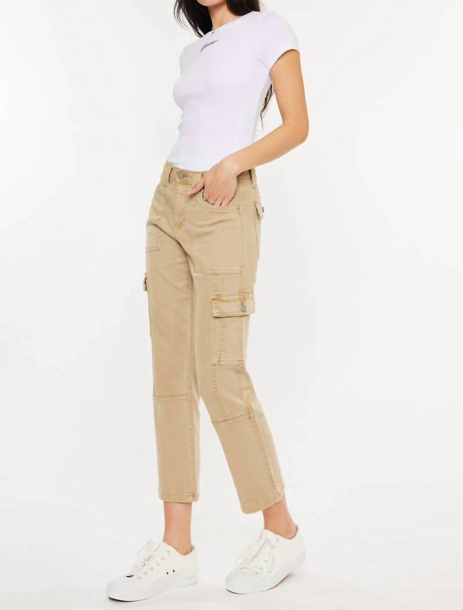 Tuck your favorite tee into these high-waist jeans for a more casual-cool feel. Elevate your wardrobe with the High Rise Cargo Jean by KanCan in a chic beige color. These relaxed fit, straight leg pants boast a mid rise for comfortable wear and feature functional cargo pockets, perfect for a minimalist look. Constructed from a 98% cotton and 2% spandex blend, with a 12.5oz weight, they offer just the right amount of stretch. These light wash jeans are equipped with a zip closure, making them a versatile choice for spring occasions like Thanksgiving dinner parties.
