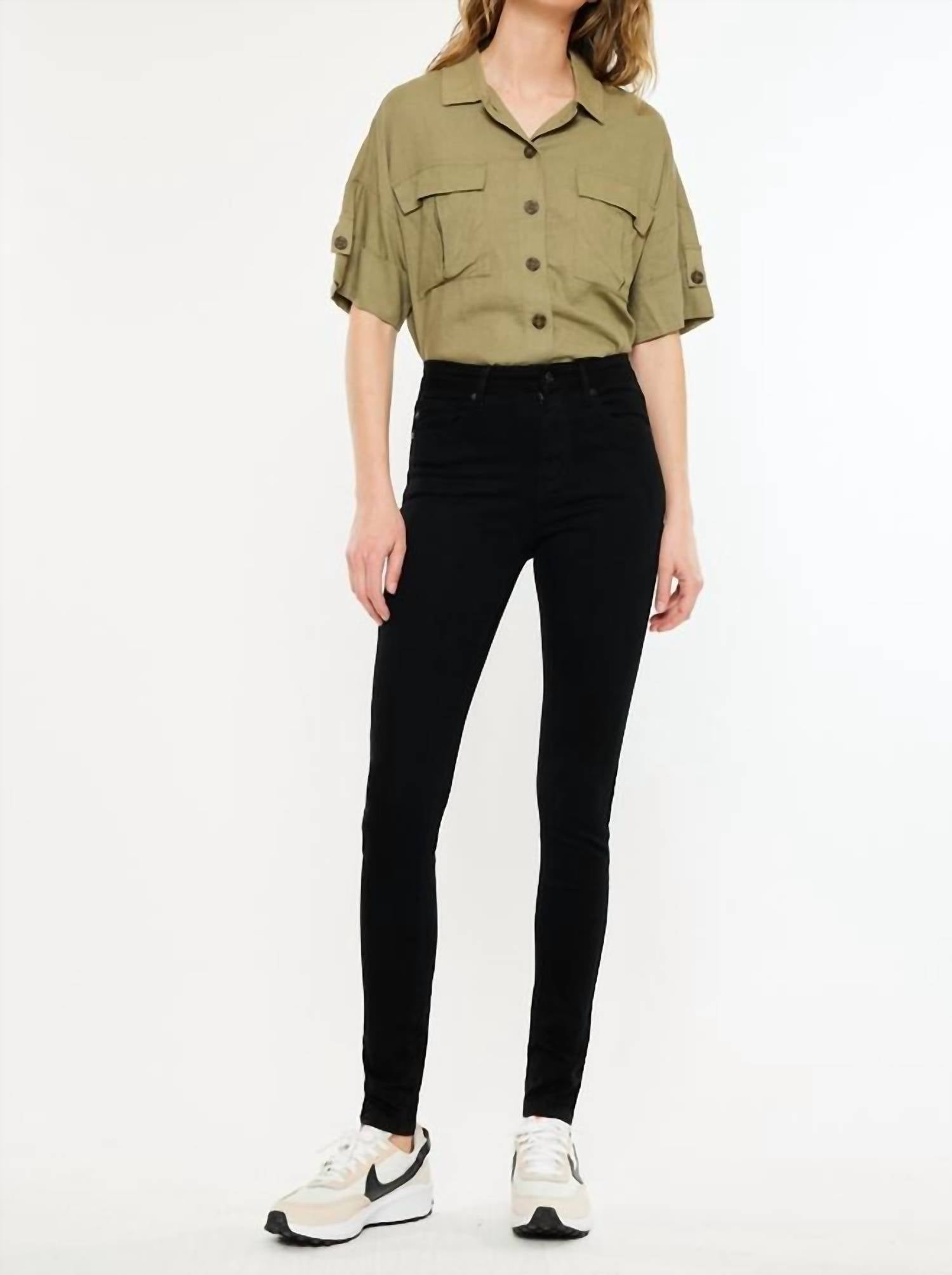 High-waist is here to stay and we especially love this style. Elevate your wardrobe with the High Rise Skinny Jean by KanCan, a sleek and stylish choice ideal for an evening event. These super skinny jeans feature a high rise and black wash with a 9.5" rise and 30" inseam in size 3/25, showcasing a modern slim fit. Crafted from a comfortable cotton blend with 51% cotton, 34% rayon, 14% polyester, and 1% spandex, they offer excellent stretch. Made in China, these jeans come with a practical zip fly closure and pockets, ensuring convenient style that's easy to maintain with machine washing.