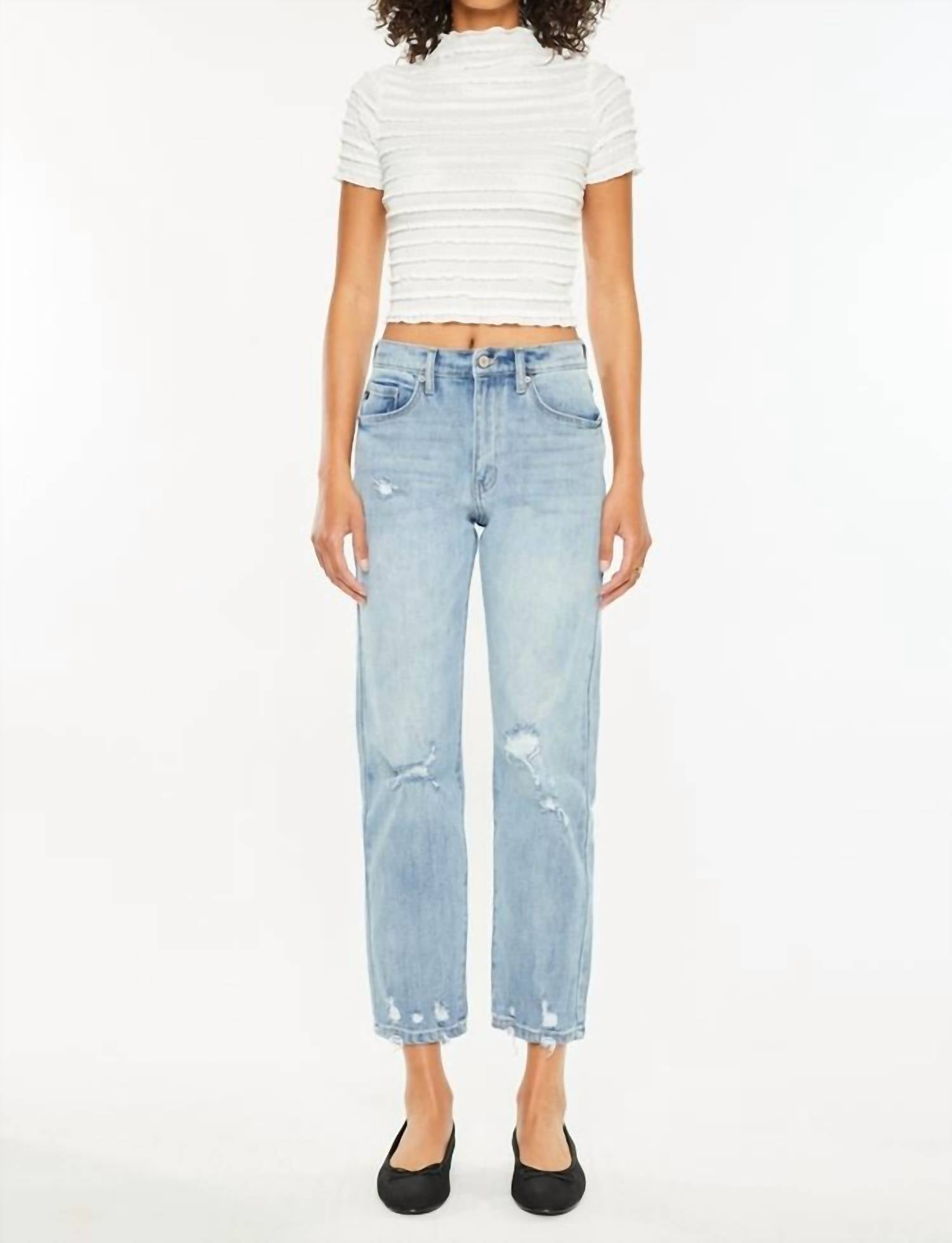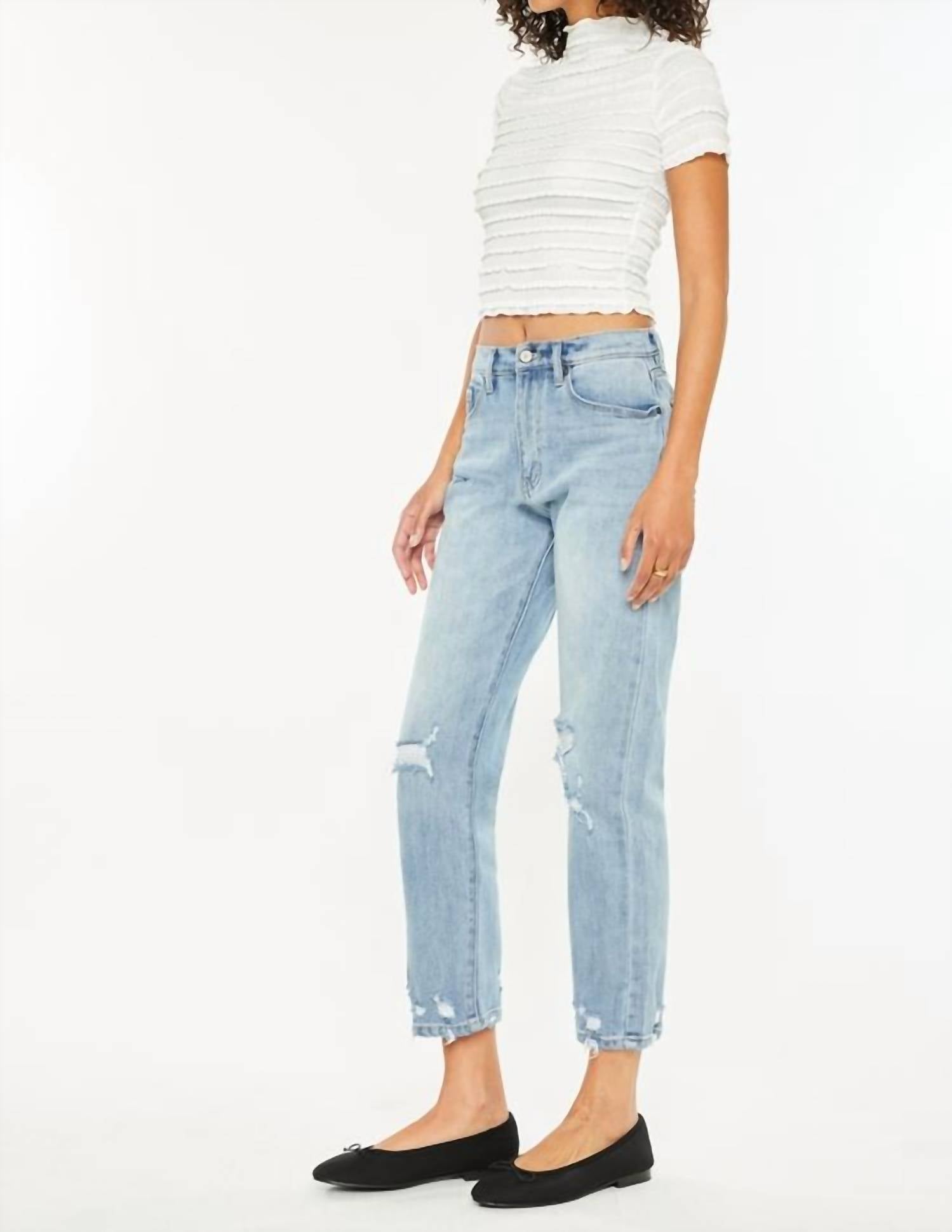 High-waist is here to stay and we especially love this style. Introducing the KanCan High Rise Straight Jean in Light Denim, perfect for a vintage-inspired outfit. These jeans feature a high rise with an 11" rise and a 27" inseam, offering a relaxed fit and a sleek straight leg. Made of 99% cotton and 1% spandex with comfort stretch, they are designed to flatter and move with you. The jeans are made in China with a zip closure and regular hem, and they're easy to maintain with machine wash care instructions.