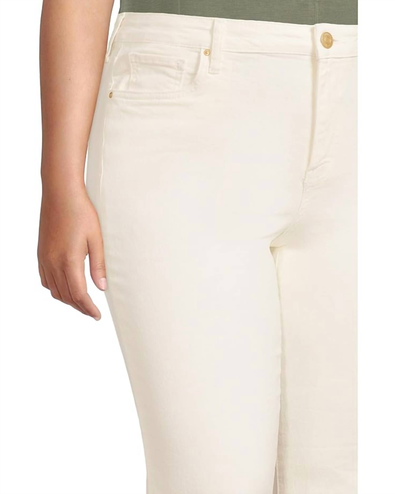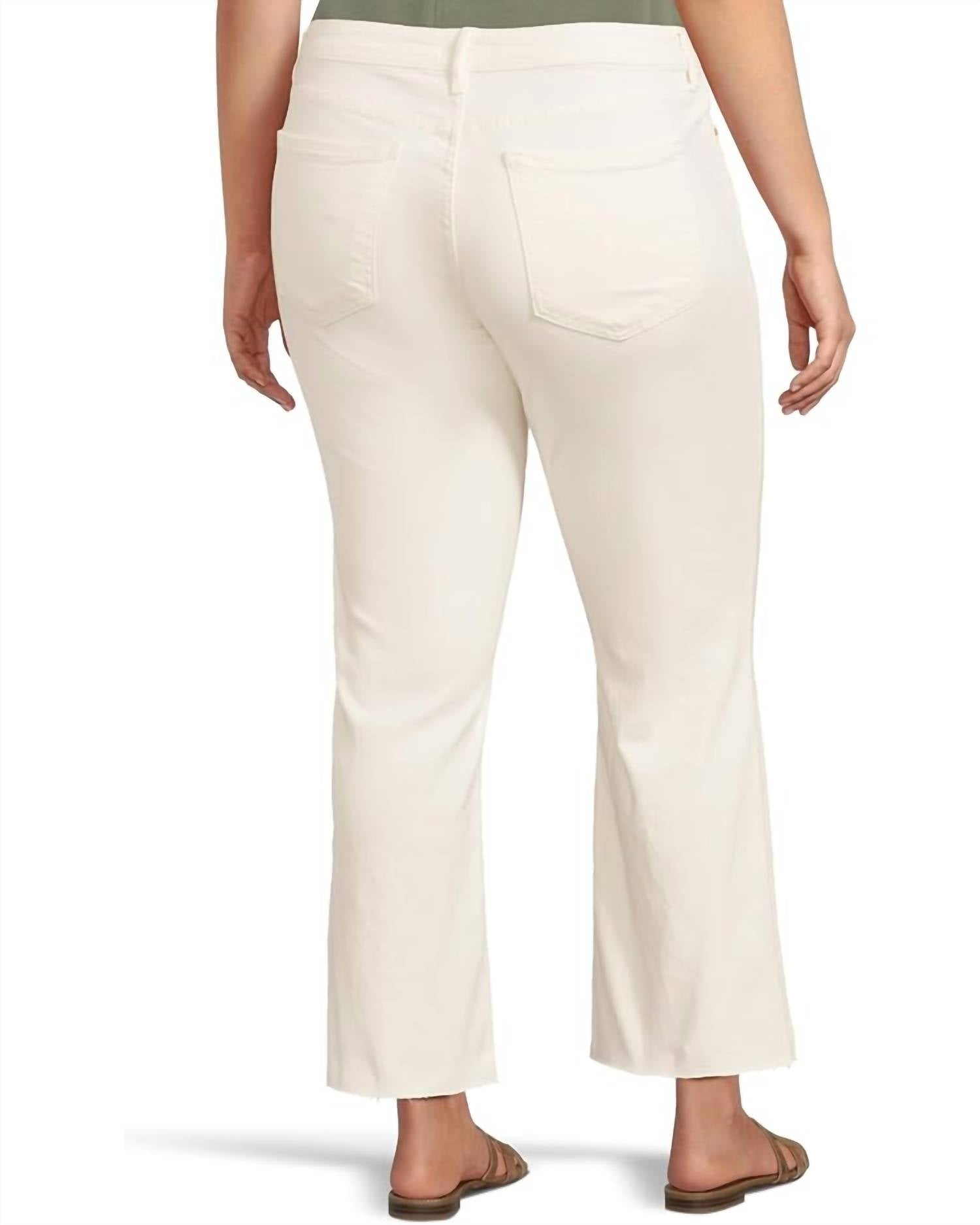 High-waist is here to stay and we especially love this style. Add a stylish edge to your wardrobe with the Kelsey High Rise Flare Jeans by KUT FROM THE KLOTH. These women's jeans offer a high-rise fit and flared leg style, crafted from a 98% cotton and 2% spandex blend in a chic ecru color. They feature a cropped ankle length, regular fit through the hips and thighs, and are finished with a zip-fly and button closure. Designed with five-pocket styling, these solid patterned jeans are machine washable and imported, perfect for pairing with your favorite chic blouses and tops. Ideal for a trendy minimalist look during spring or a Thanksgiving holiday party.