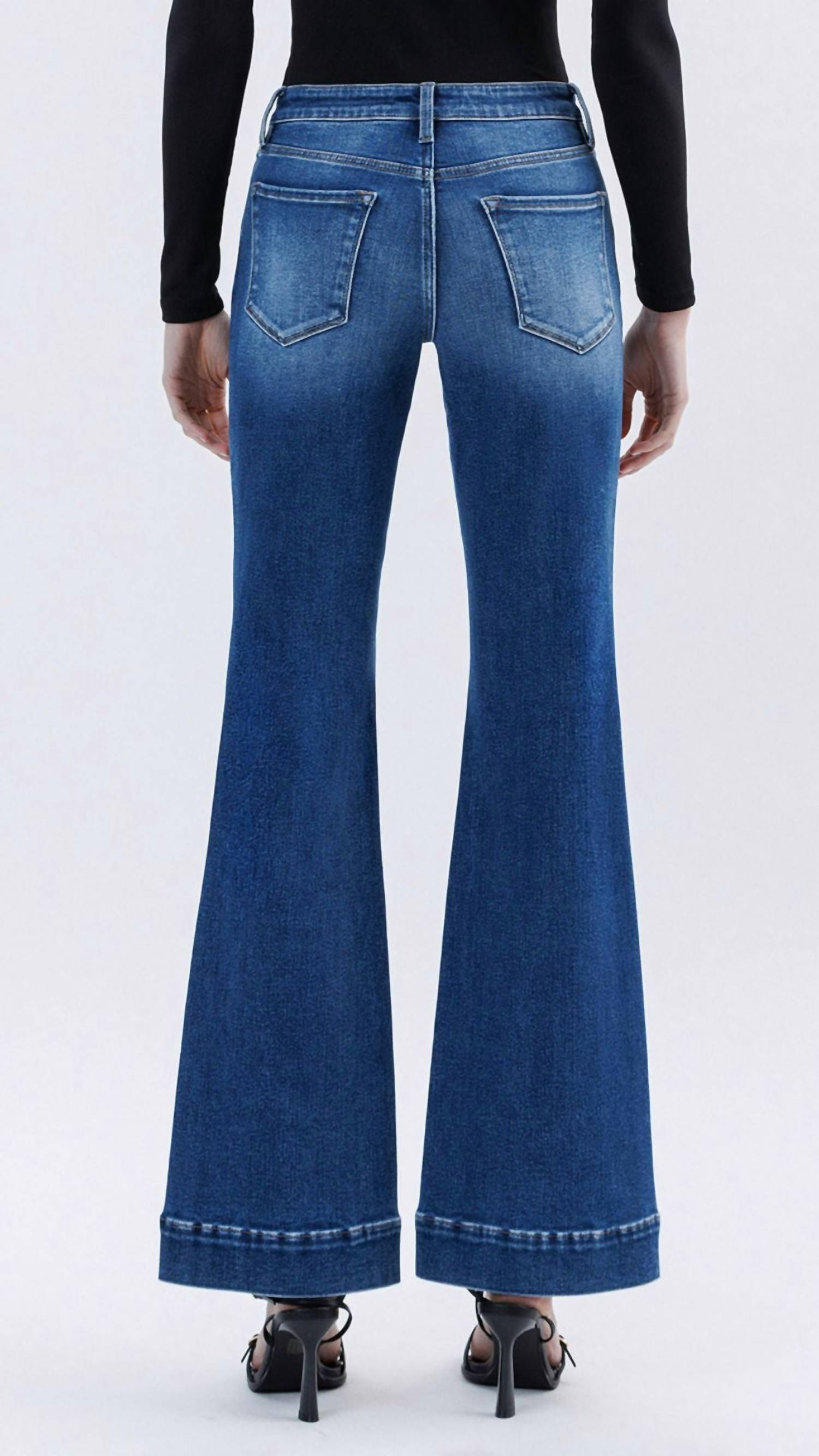 Lovervet - High Rise Trouser Hem Relaxed Flared Full Length Jeans