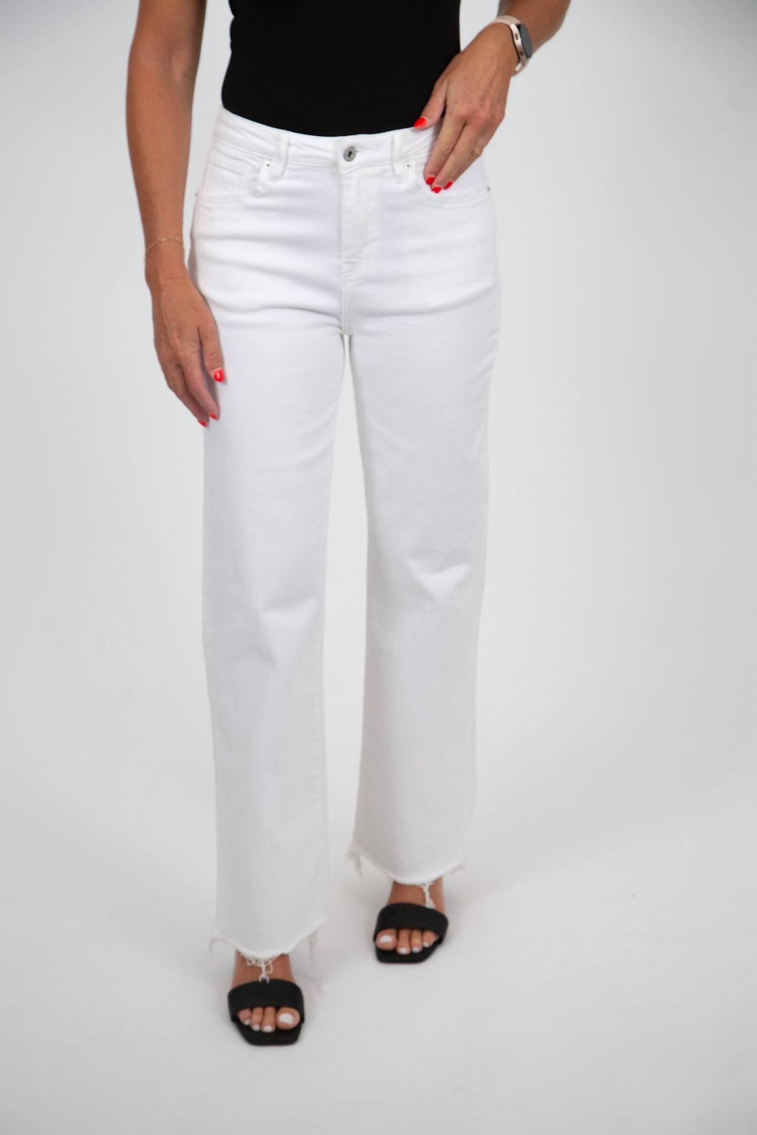 Mica Denim - High Rise Wide Leg With Raw Hem Jeans