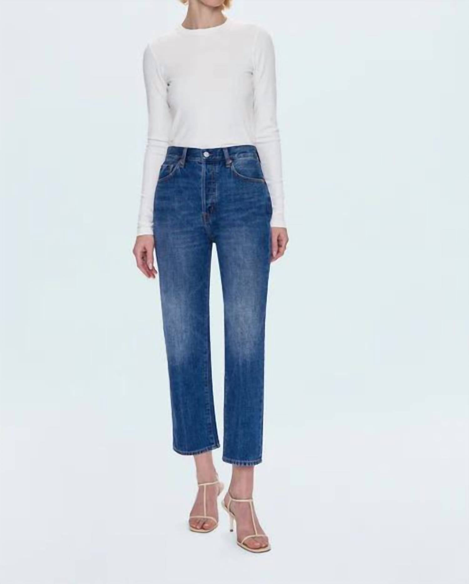 High-waist is here to stay and we especially love this style. The Cassie Crop High Rise Jeans by PISTOLA are a stylish addition to any wardrobe, featuring a high rise and a cropped 26" inseam for a trendy look. Crafted from 100% cotton, these rigid, non-stretch jeans maintain their shape and are perfect for women seeking a flattering silhouette. The classic straight leg and the Fairview wash provide a vintage, lived-in appeal, ideal for spring streetwear and dinner parties. Closure: Button closure. Care is simple with machine wash cold inside out and tumble dry instructions. With a rise of 12” and a leg opening of 16", the jeans deliver both comfort and style. Imported.