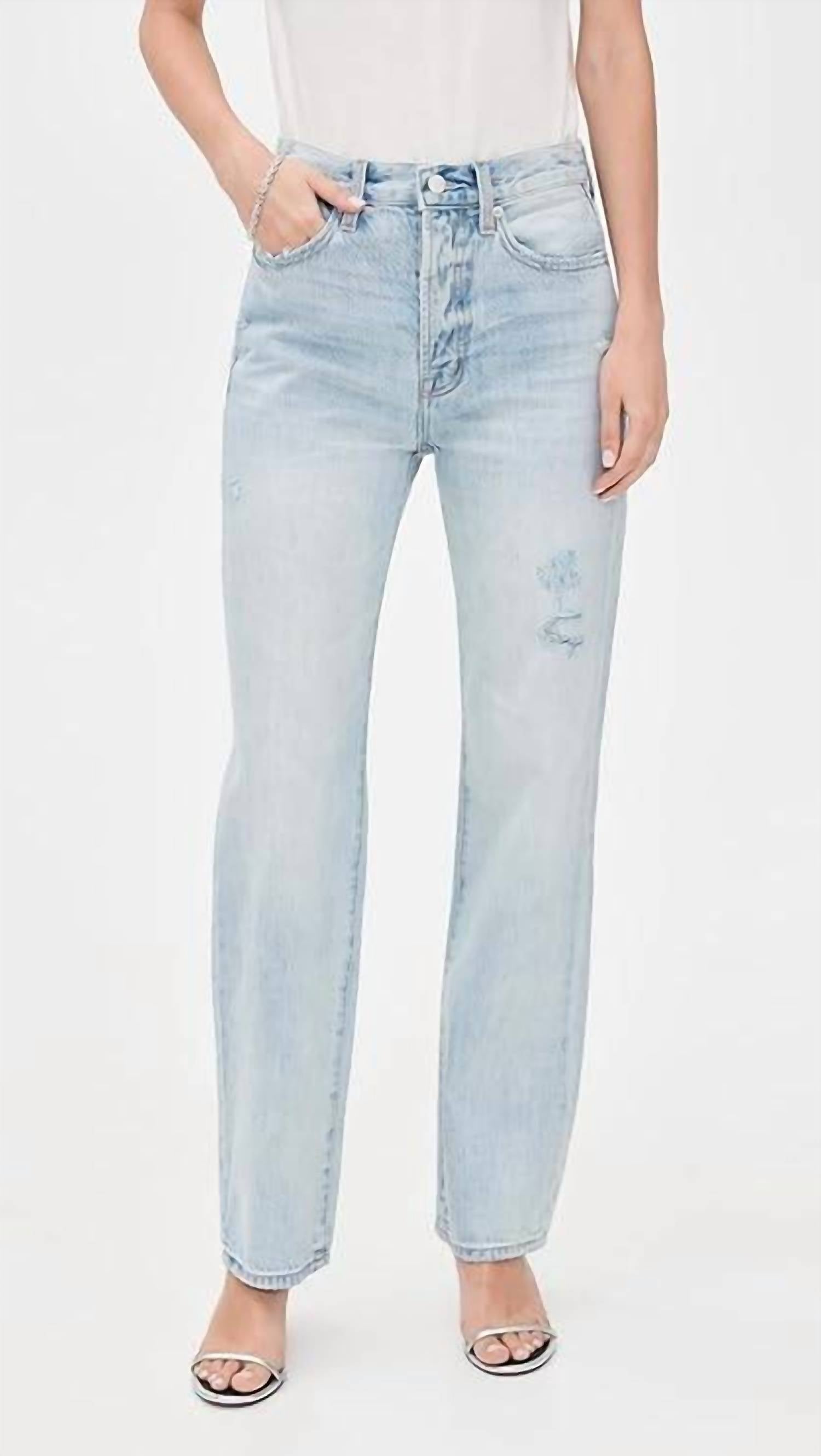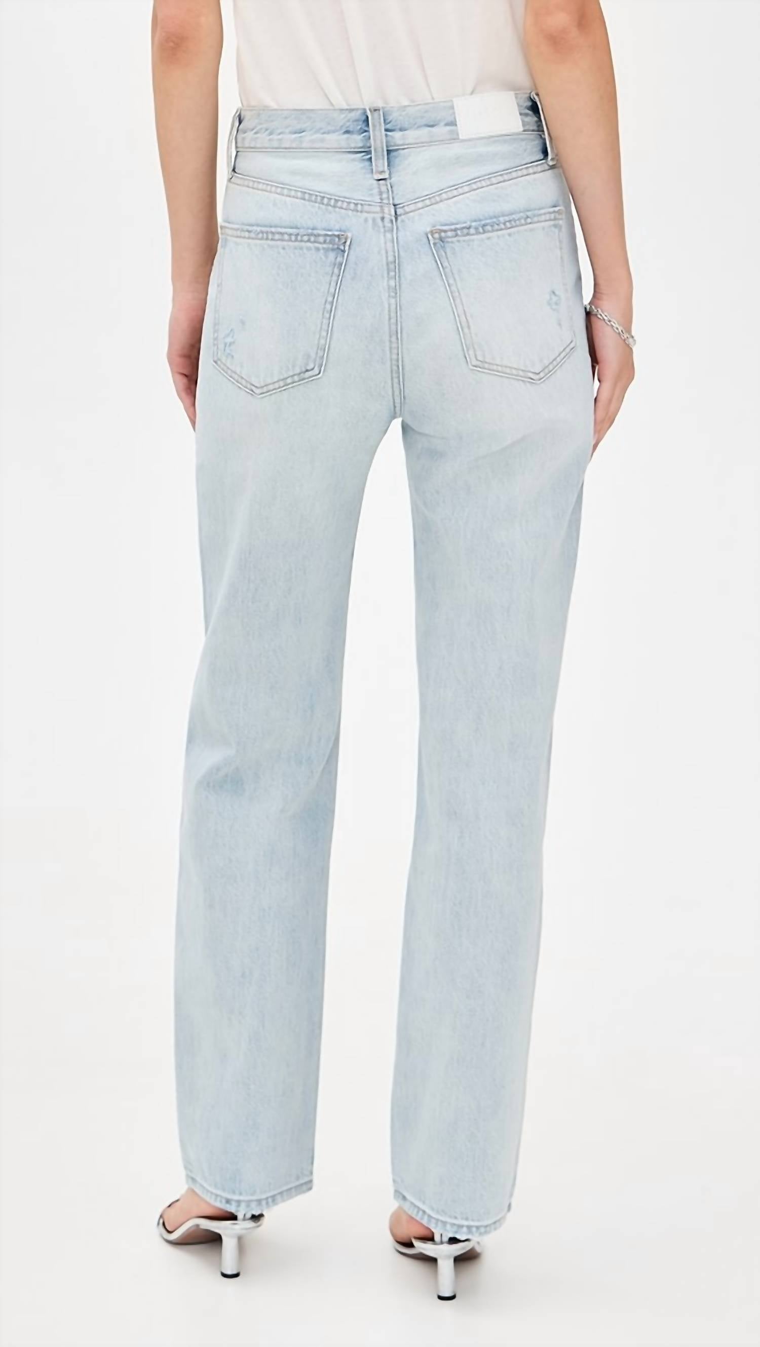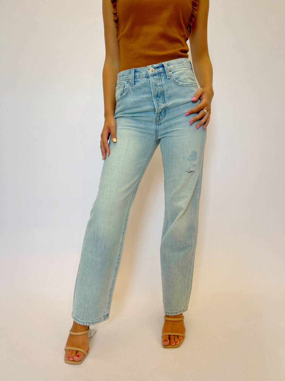 Tuck your favorite tee into these high-waist jeans for a more casual-cool feel. Meet the Cassie High Rise Straight Jean by PISTOLA, a stylish choice in a captivating Sunset Vintage light wash. Constructed from mid-weight, non-stretch 100% cotton denim, these jeans feature a high-rise with a straight-leg fit and relaxed cut. Closure: Button fly with classic 5-pocket styling. Care: Machine wash and tumble dry. Designed with a rise of 11.75 inches, inseam of 29.25 inches, and a leg opening of 15.75 inches, they blend comfort with a streetwear vibe for a summer travel staple. Imported from China.
