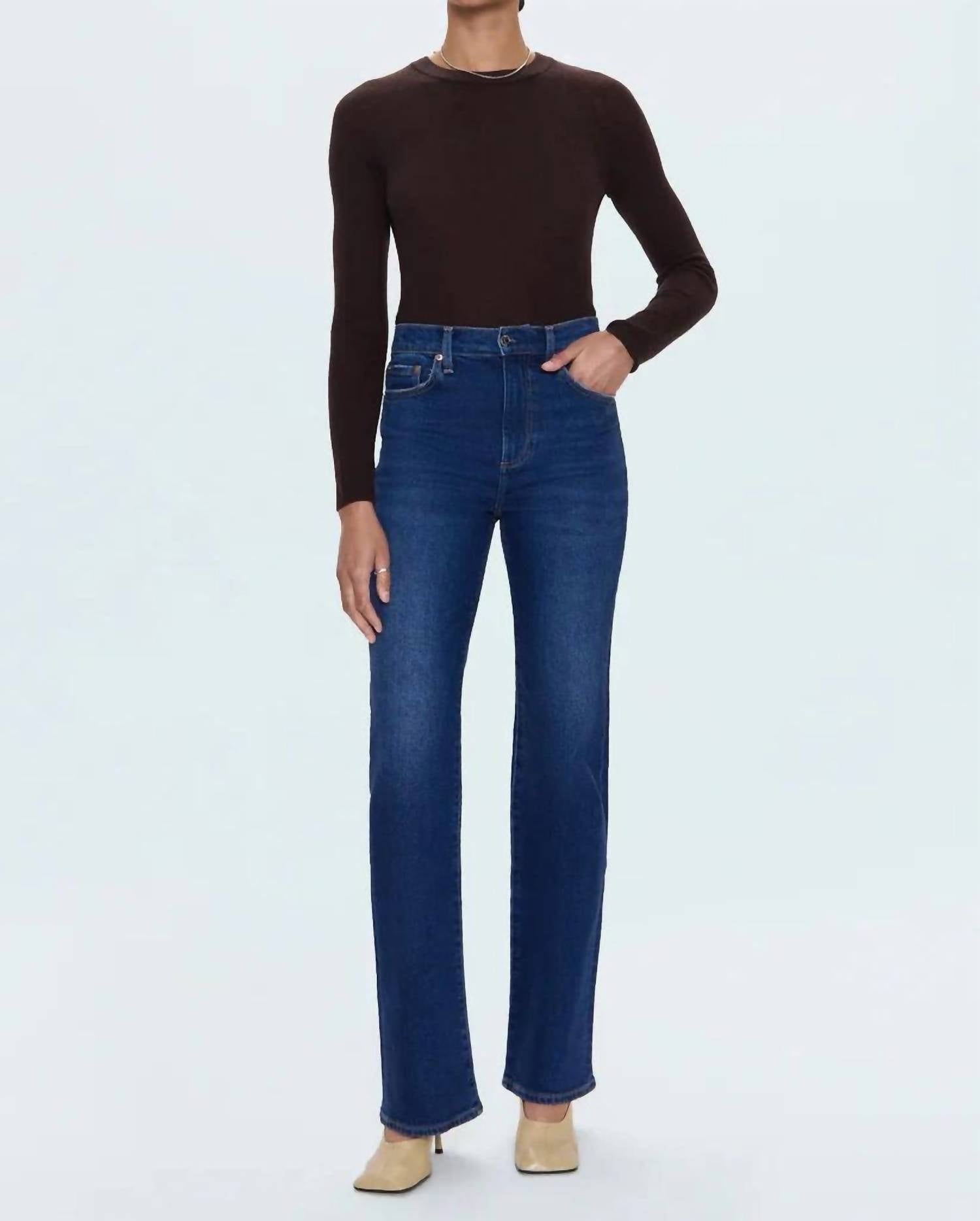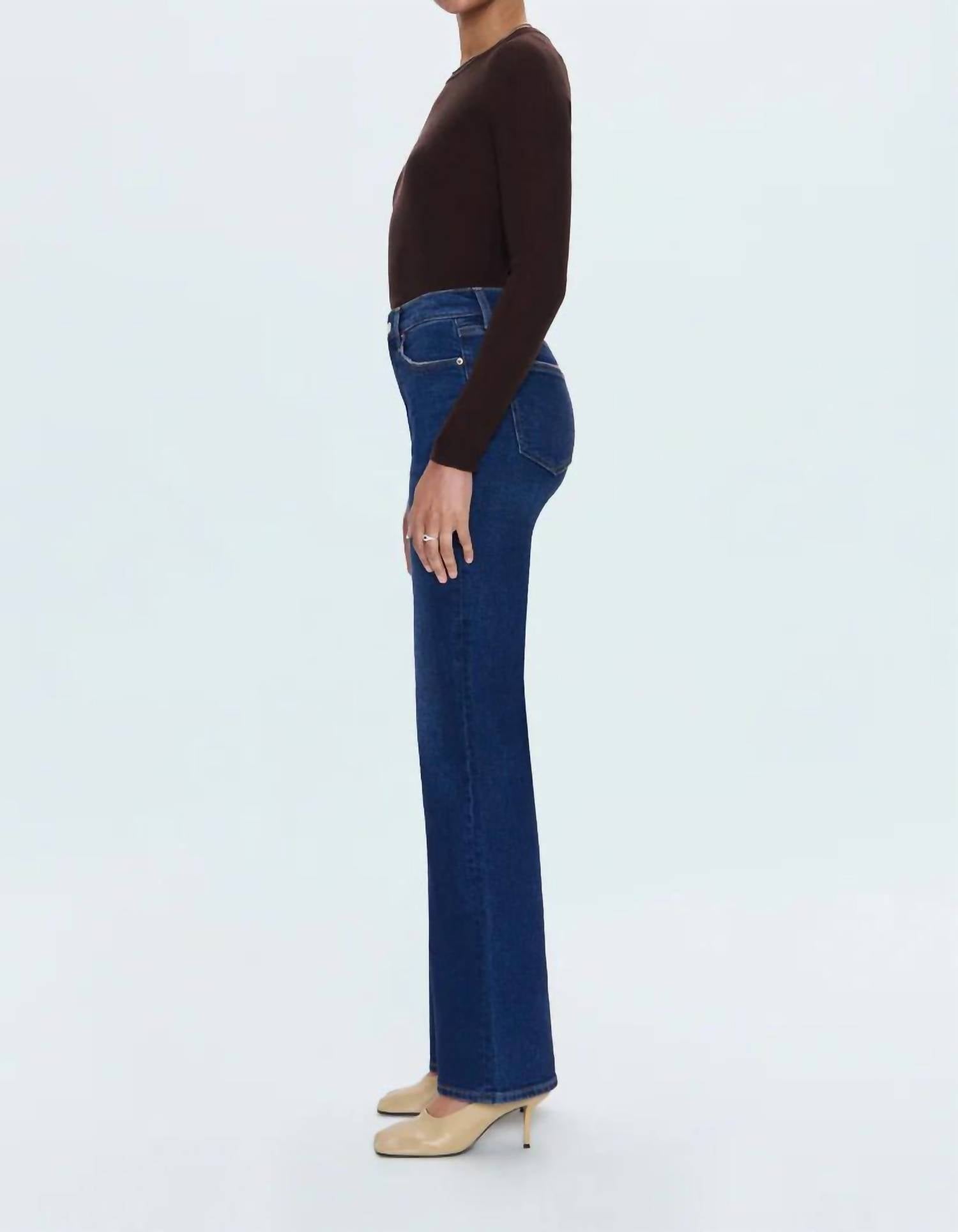 High-waist is here to stay and we especially love this style. Enhance your wardrobe with the Evie High Rise Slim Bootcut Jeans by PISTOLA, tailored for a modern and flattering fit. These jeans feature a slim fit through the hips and thighs, transitioning into a stylish bootcut leg with an elongating 33" inseam. Crafted from a cotton blend with 99% cotton and 1% spandex, in the rich dark indigo colorway "Penthouse," they offer both comfort and style. Closure is ensured with a button design, and care is simple with machine wash cold and tumble dry instructions.