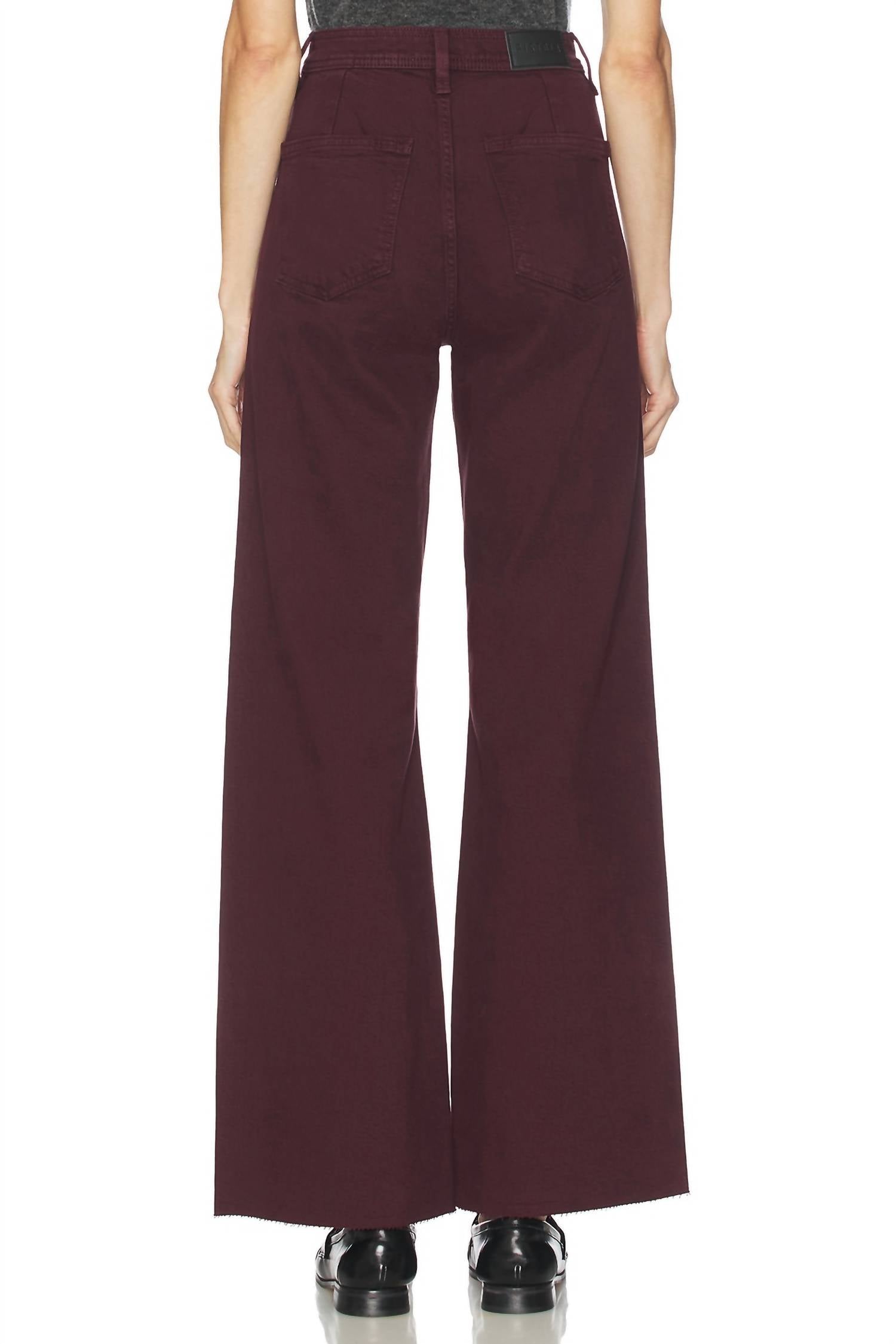 High-waist is here to stay and we especially love this style. Meet the Penny High Rise Wide Leg Jeans by PISTOLA, an essential for any fall wardrobe in its rich Claret hue. Featuring a high rise of 12", the ultra wide-leg silhouette provides a full-length 28" inseam that flows with relaxed elegance, creating effortless drama for evening events. Crafted from a 99% Cotton and 1% Spandex blend, these jeans offer comfort stretch and a flattering fit. Closure is facilitated by a zip closure, and care is simple with machine wash instructions.