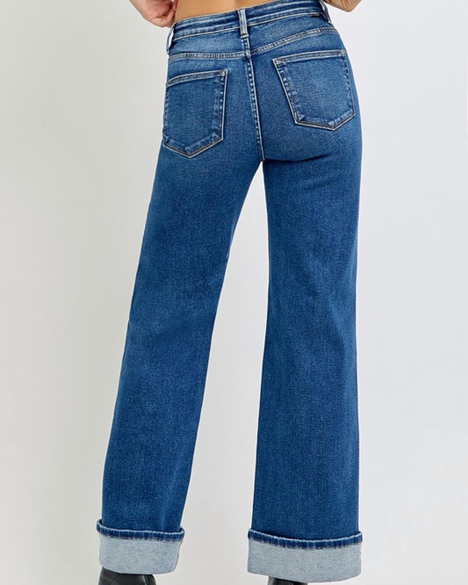 Risen - Colbie Tummy Control High Rise Cuffed Wide Jeans