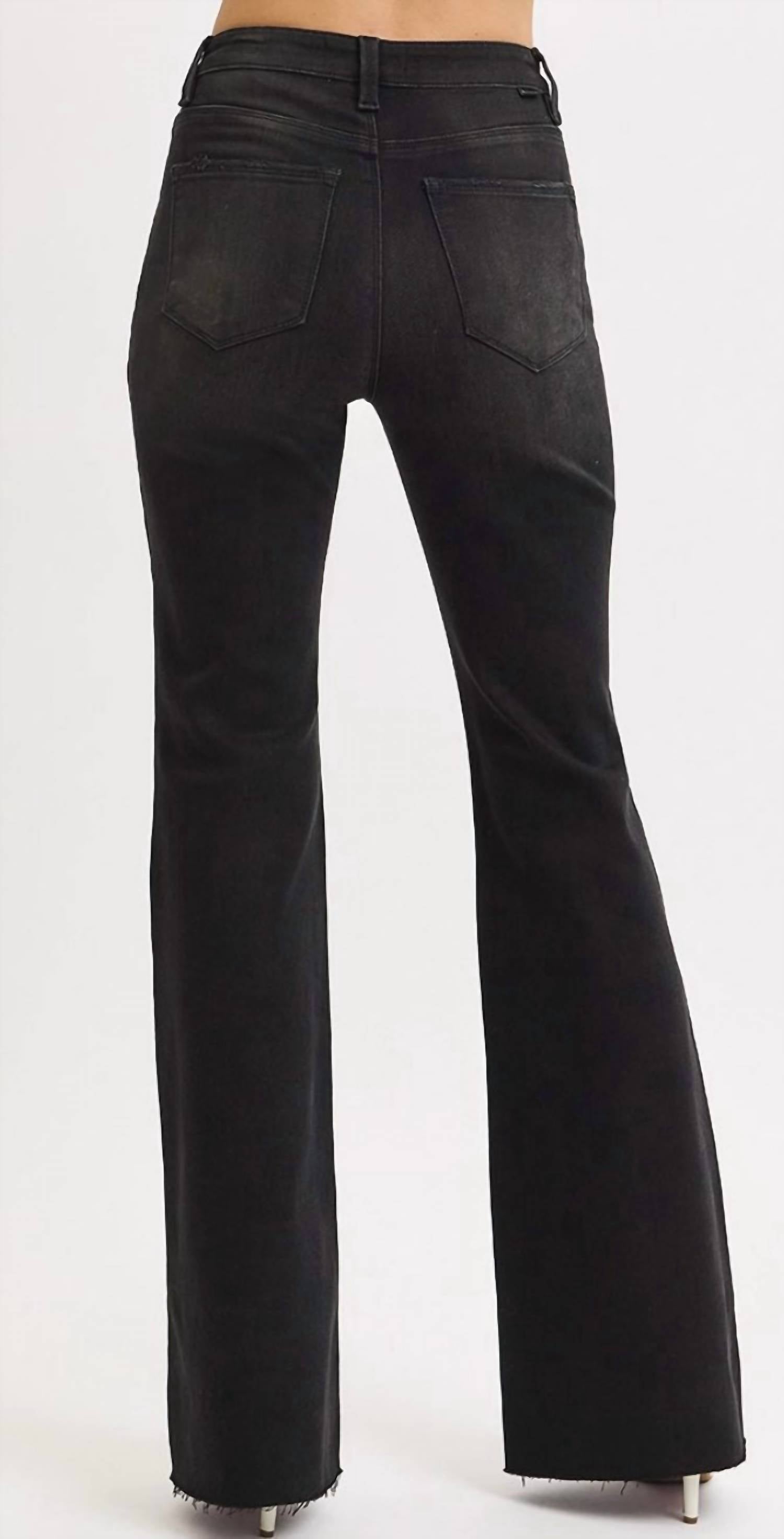 Tuck your favorite tee into these high-waist jeans for a more casual-cool feel. Elevate your wardrobe with the High Rise Flare Raw Cut Hem Jeans by RISEN, perfect for a touch of streetwear style. With a flattering high rise of 10.5 and a relaxed fit, these jeans feature a flared leg and button closure for easy wear. Made from a comfortable cotton blend consisting of 63.5% cotton, 22.3% polyester, 12.6% rayon, and 1.6% spandex, they provide durability and stretch. Enjoy their solid black color in a dark wash, ideal for spring occasions like Easter or engagements. Care for them easily with a machine wash cold.