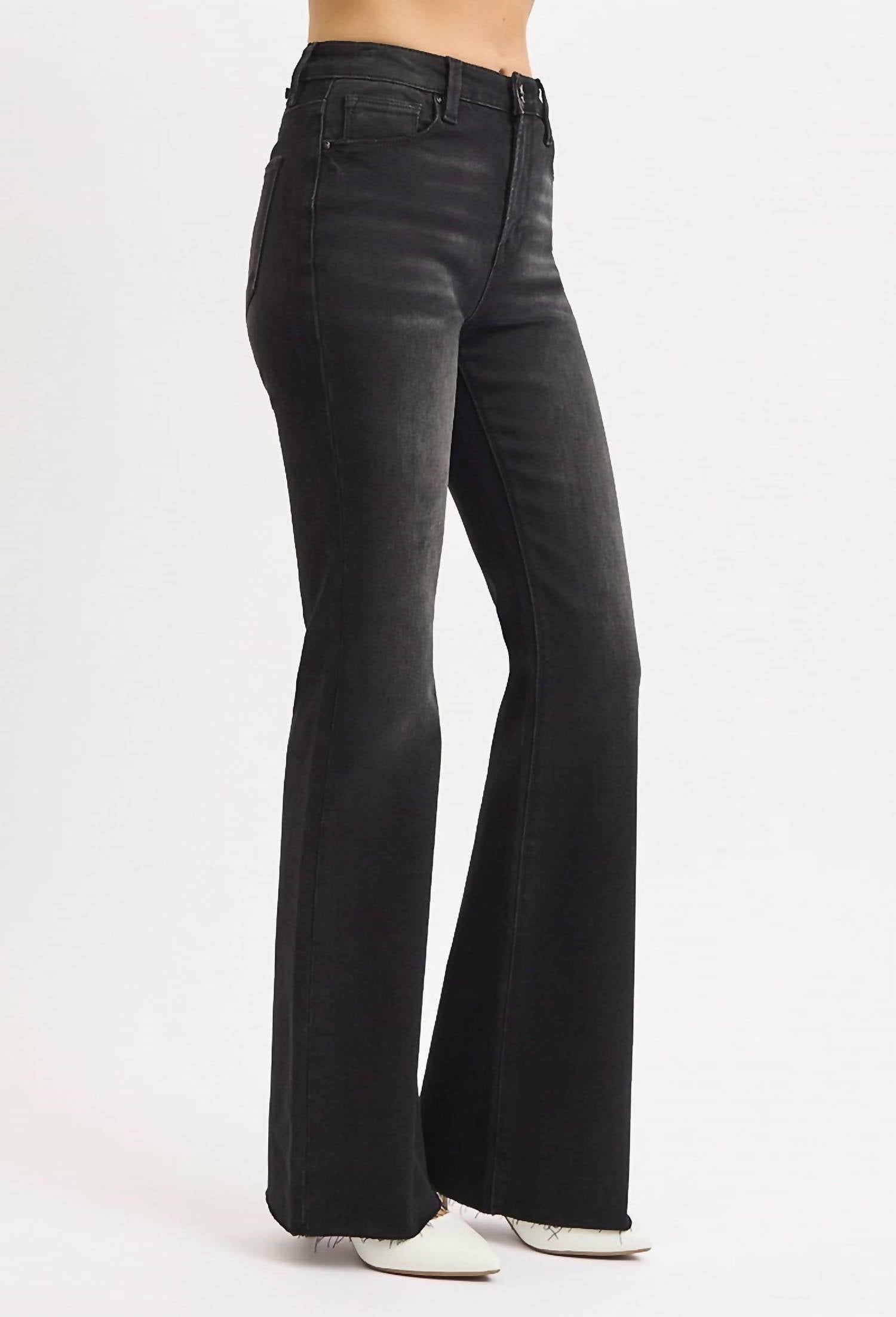 Risen - High Rise Flare Raw Cut Hem Jeans
