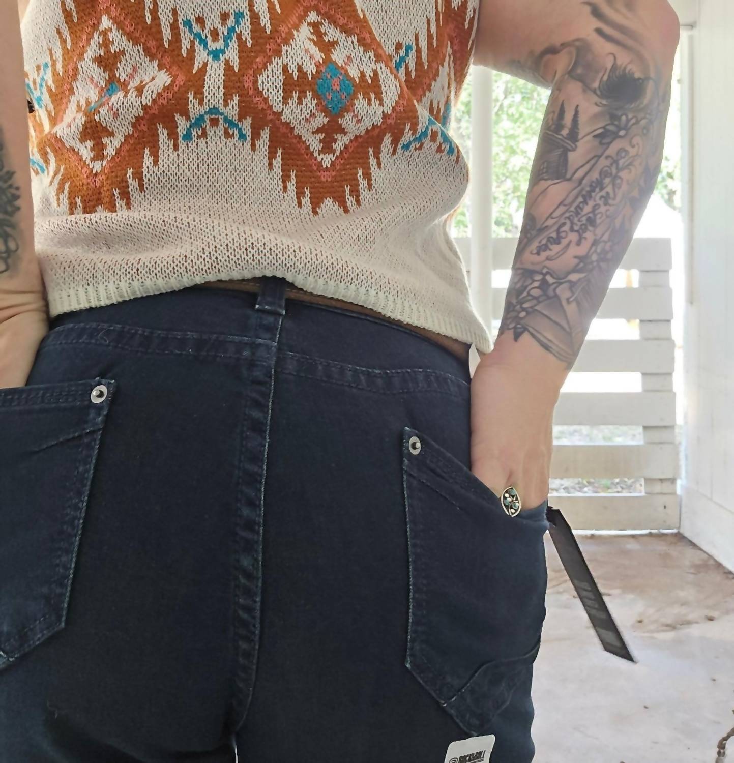 High-waist is here to stay and we especially love this style. Introducing the Western Denim Trouser Jeans by Rock & Roll Denim, a versatile high-rise piece that combines classic western style with a modern twist. Crafted in a solid blue, these trousers feature a relaxed fit with a button closure to ensure all-day comfort. The design proudly incorporates functional pockets and showcases precision stitching for a rugged-meets-refined appearance. Whether paired with a fringe jacket or a fitted blouse, these trousers are ideal for adding a bold edge to your spring wardrobe.
