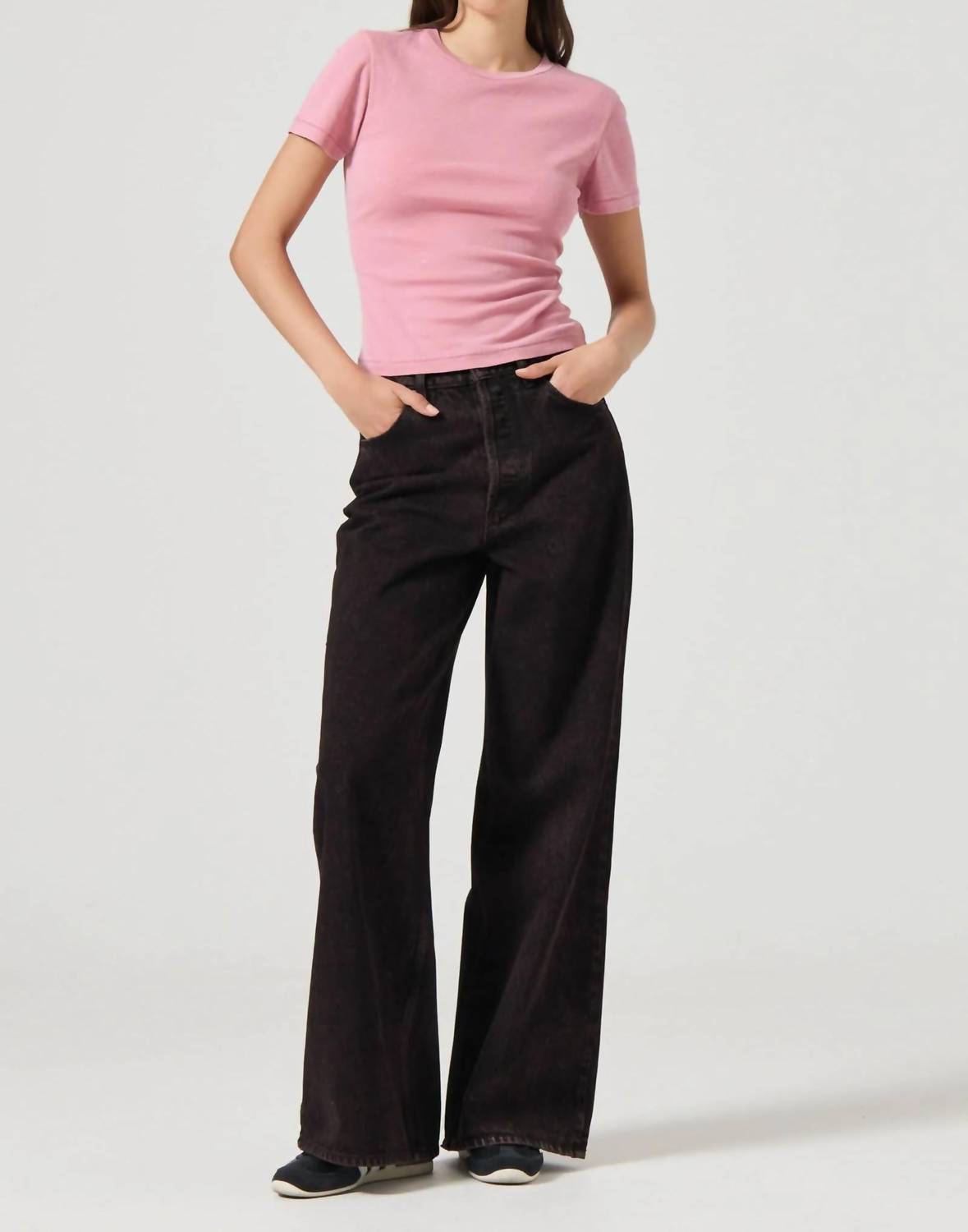 Fit to perfection, we love these high-waist jeans and you will too. Embrace the relaxed elegance of the Relaxed Sailor Long Jean by Rolla's, crafted exclusively for women who appreciate style and comfort. Designed with a high-rise, wide-leg fit, these jeans in a solid chocolate hue offer a flattering silhouette. Made from 100% Cotton and featuring Rolla's vintage gold logo button, this piece ensures durability and classic appeal. Closure: Button closure. Care: Warm machine wash separately before use, wash and dry inside out, lay flat to dry.