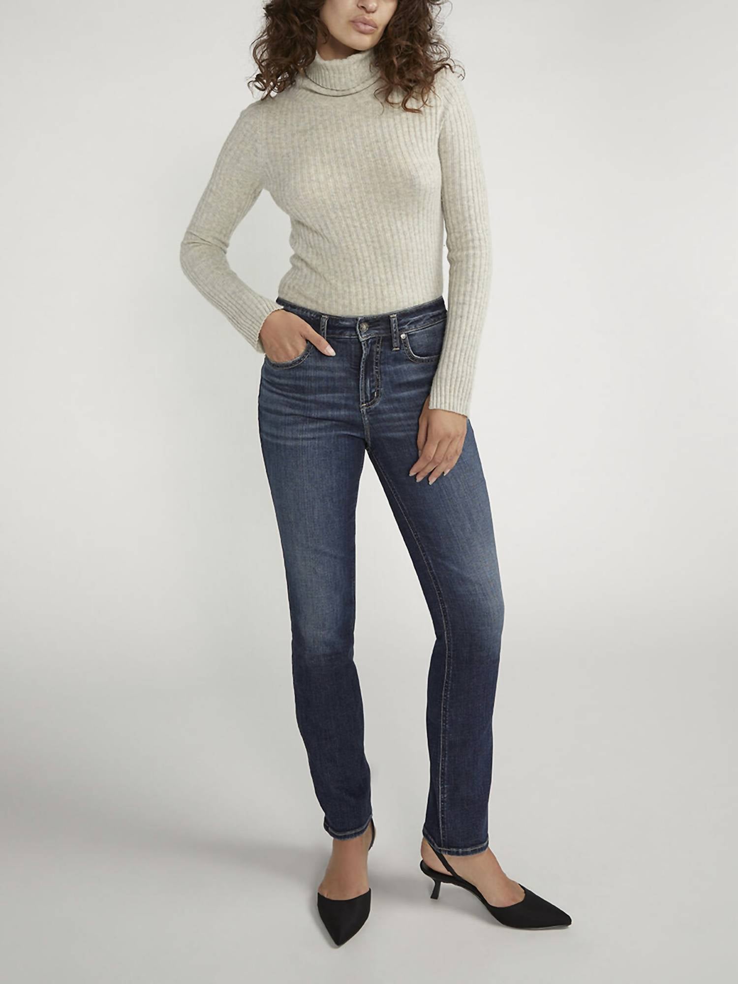 High-waist is here to stay and we especially love this style. Elevate your denim collection with the Avery High Rise Straight Leg Jeans by Silver Jeans Co, crafted in a solid Maisie hue for a polished, minimalist look. These jeans feature a high-rise waist and a straight leg style, designed in a regular fit for a flattering silhouette. Composition: 95% Cotton, 4% Elasterell-P Polyester, 1% Elastane. Closure: Button closure. Wash: Machine wash; Dry: Tumble dry.
