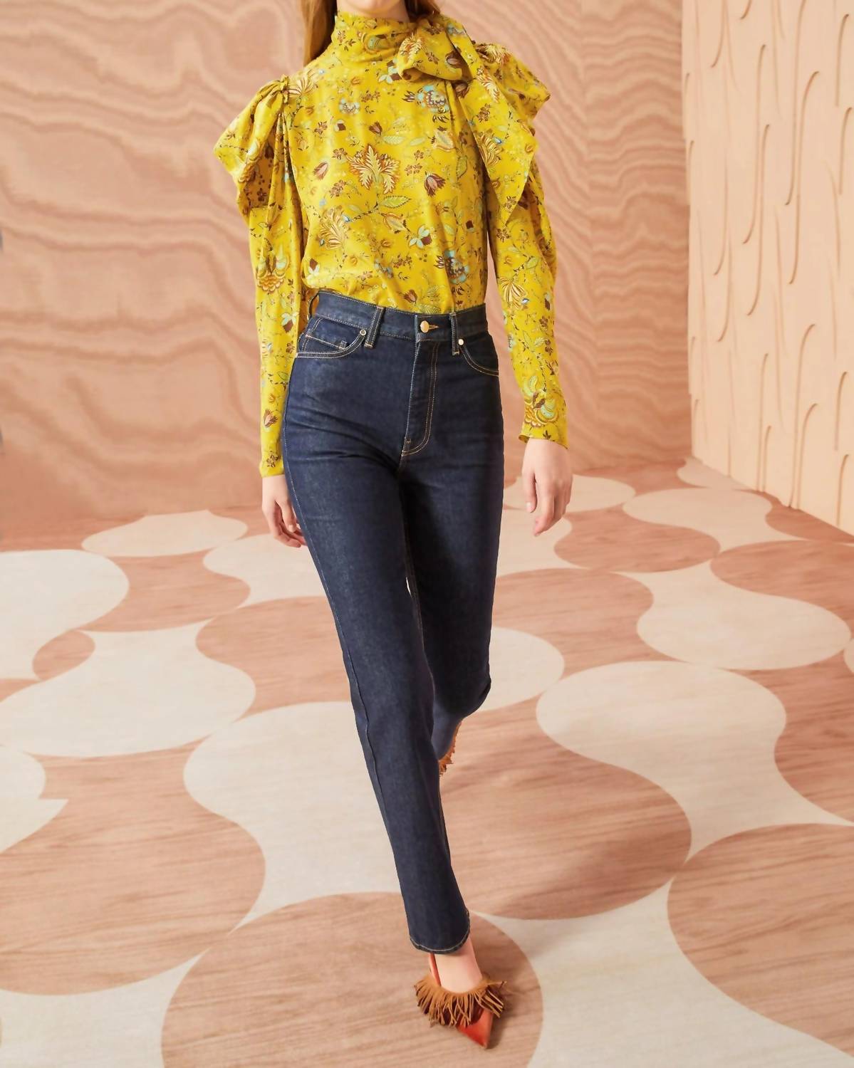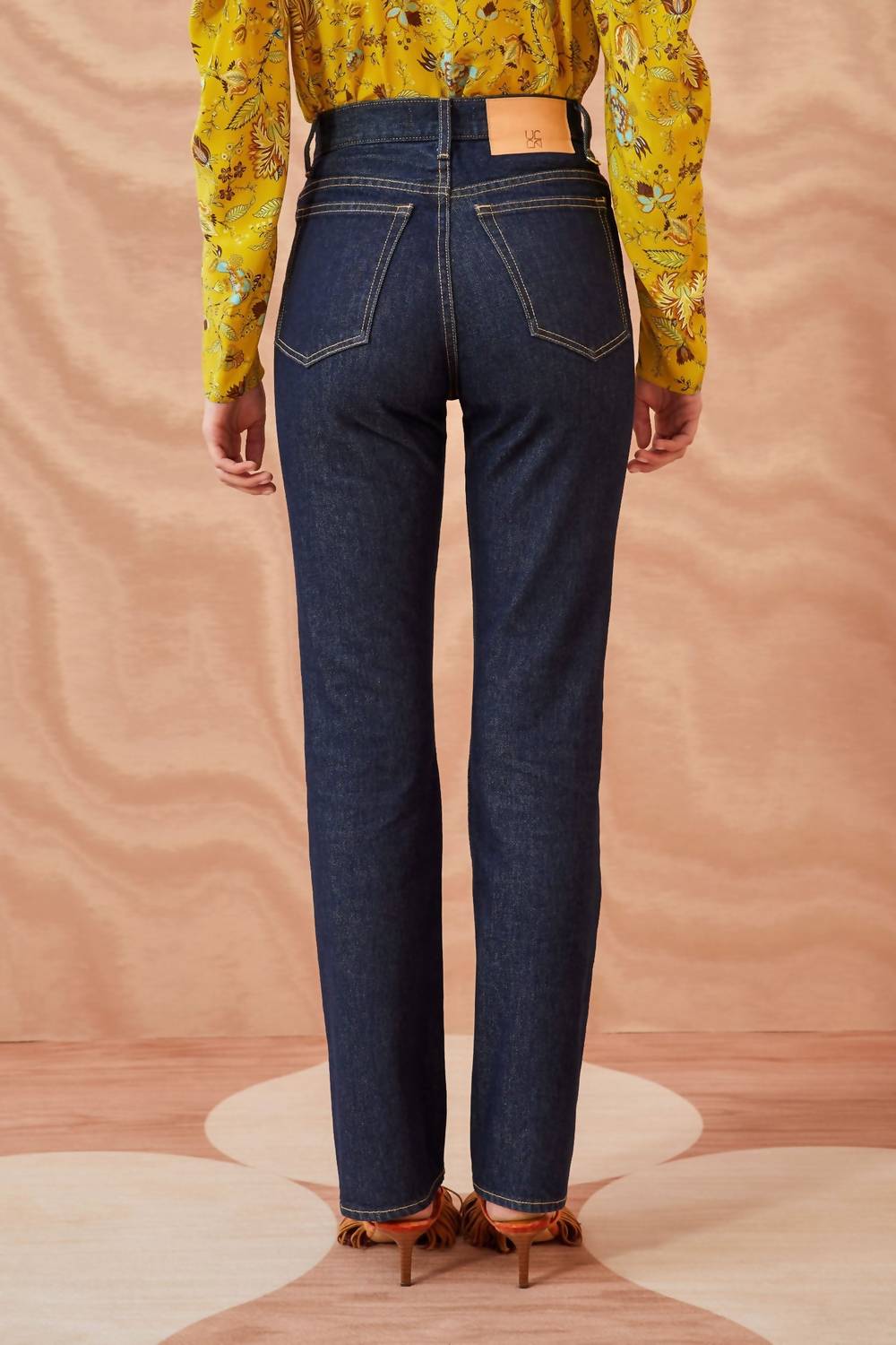 High-waist is here to stay and we especially love this style. The Agnes Jean is one of Ulla Johnson's iconic styles of her inaugural denim collection, handmade in Los Angeles. This denim jean silhouette features a straight leg, high-waist and elegant, clean lines, arriving in deeply-hued Tigris. This jean is cut in non-stretch denim with a leather logo-embossed waistband patch and a hand-hammered ring attached to the back belt loop. Each style is designed to perfectly complement the silhouettes of every ready-to-wear collection. Composition: 100% Cotton