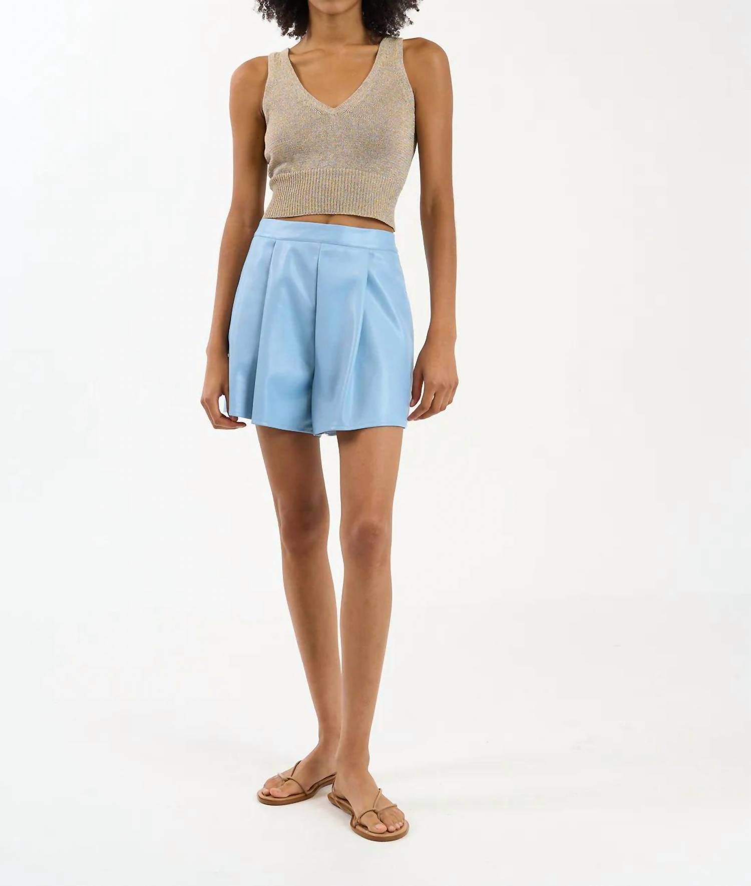 Tuck your favorite tee into these high-waist shorts for a more casual-cool feel. Elevate your spring style with the Reed Leather Pleated Shorts by Sundays, a staple piece in a sophisticated Dusty Blue shade. Designed for women and featuring a high waist, these solid-patterned shorts offer chic simplicity and functionality with pockets. The pull-on closure ensures ease of wear, accentuating the luxurious aesthetic that's perfect for a cocktail party or New Year's Eve celebration. Crafted for timeless appeal, these shorts require dry cleaning to maintain their pristine condition.