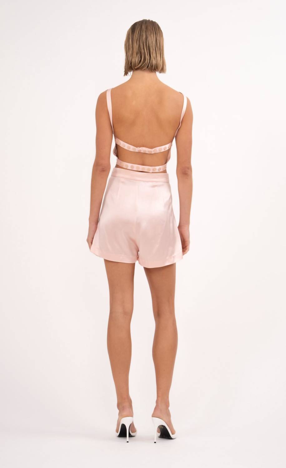 Fit to perfection, we love these high-waist shorts and you will too. Elevate your summer wardrobe with the Coralie Short by Nonchalant Label, a sophisticated option in pastel pink. Crafted from silky nylon, these high-waisted shorts feature a solid pattern, tailored pleats, and functional pockets for effortless style. They are secured with a hook and eye closure and are perfect for cocktail parties and other occasions. Care instruction: Dry clean only.