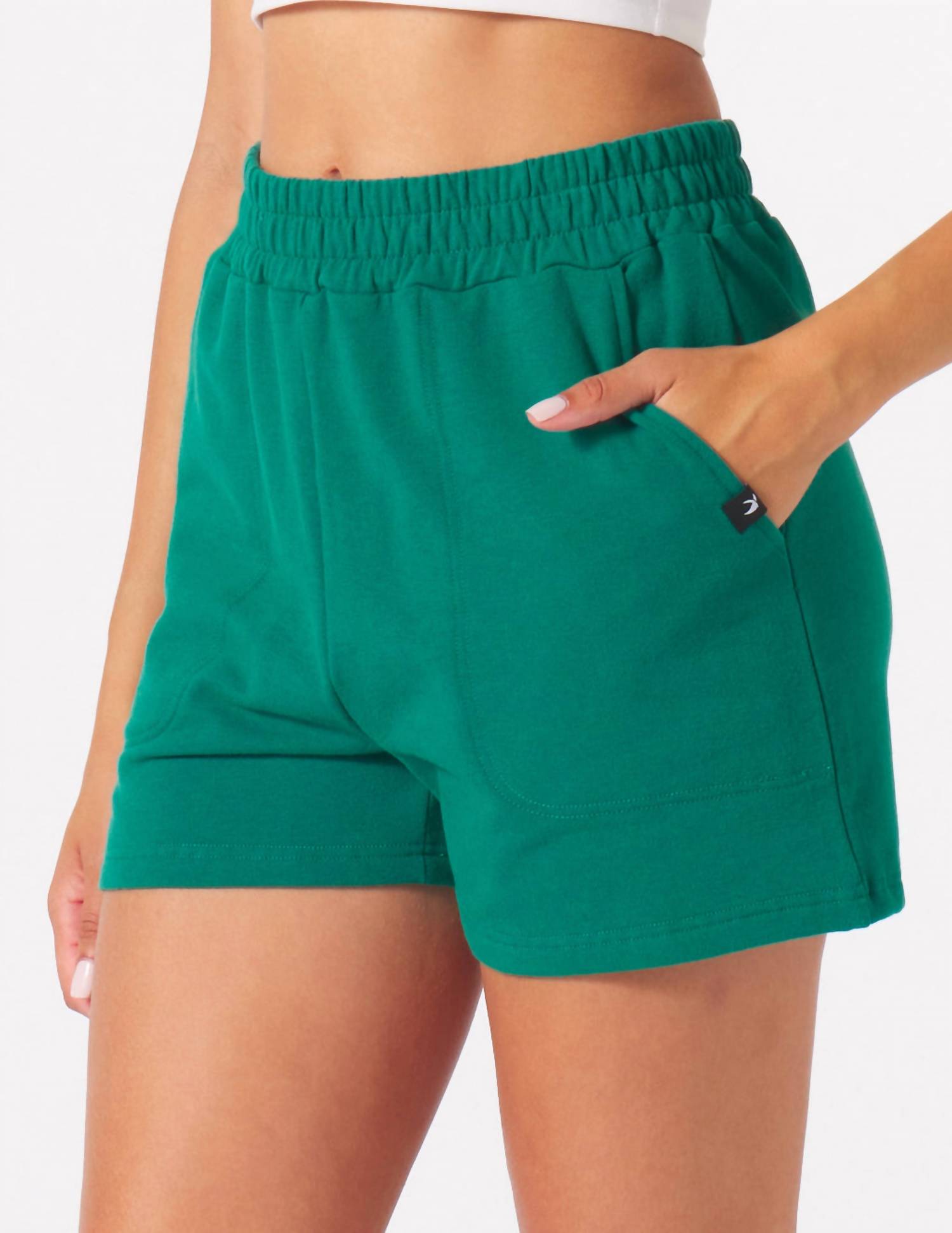Tuck your favorite tee into these high-waist shorts for a more casual-cool feel. Introducing the Vintage Oversized Sweat Short by Glyder, meticulously crafted for exceptional comfort with a soft PLUSH FLEECE™ cotton blend. These high-waisted shorts boast an oversized fit and a structured vintage cut, allowing for a relaxed yet stylish look. Country of origin is not specified, but they feature a convenient pull-on closure. Perfect for cozy days, these shorts redefine comfort with their brushed interior and exterior, and they include practical pockets for added functionality. Care instructions are not provided. Model is 5'10" with measurements 32" chest, 26" waist, and 37" hips.