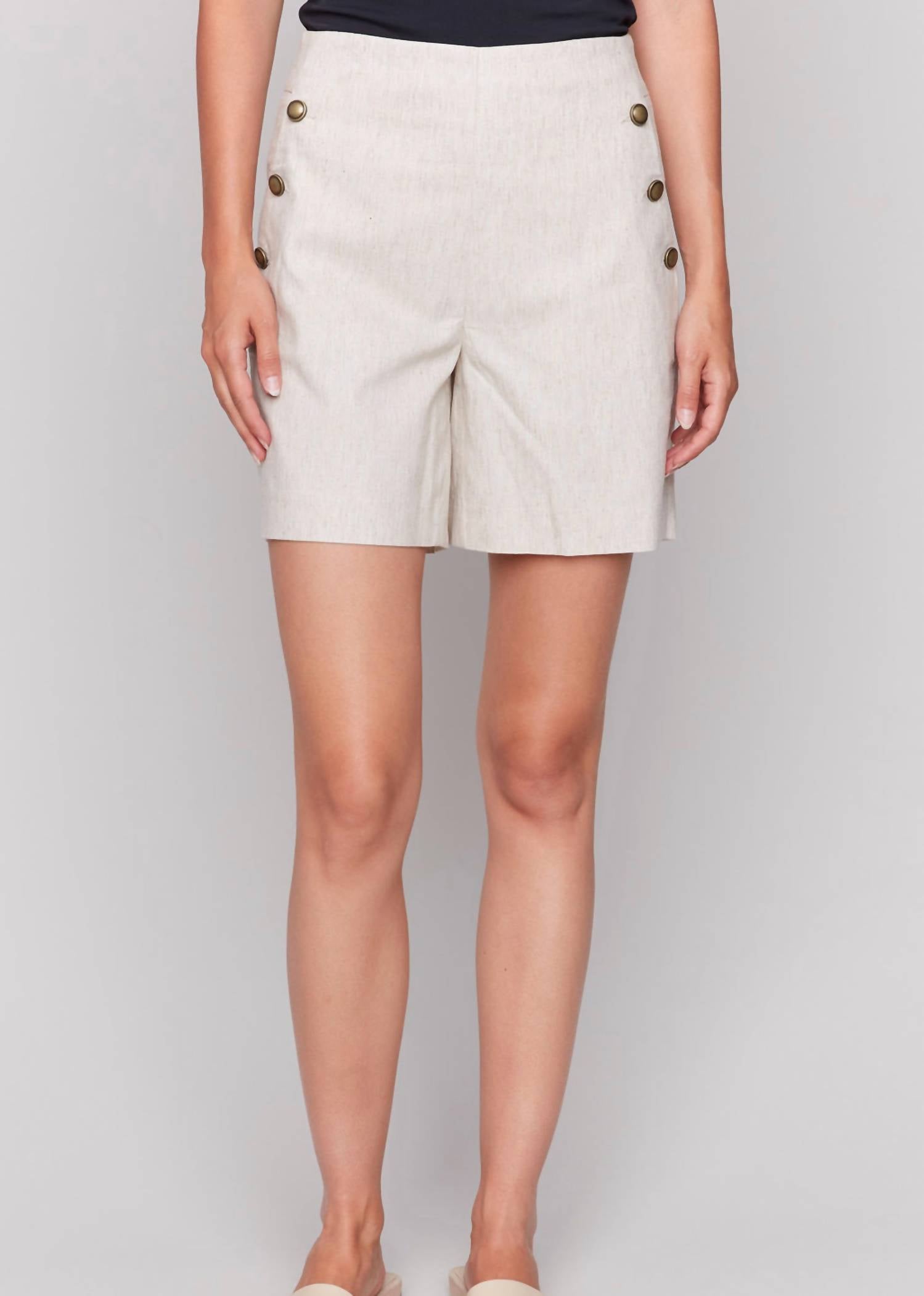 Charlie B - Button Detail Linen Stretch Shorts
