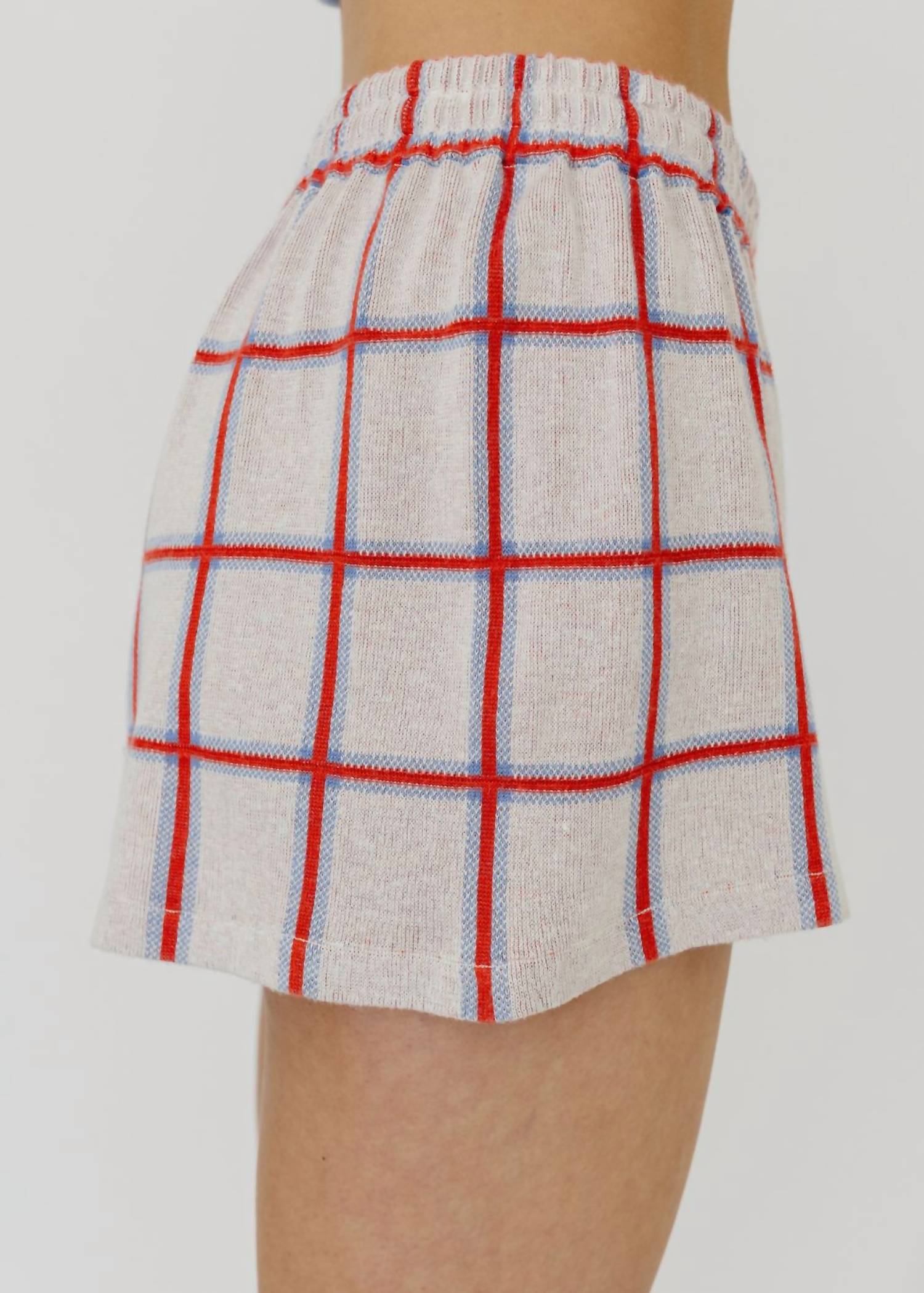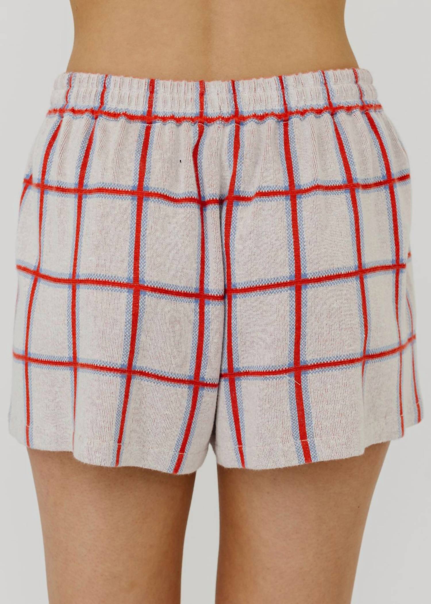Tuck your favorite tee into these high-waist shorts for a more casual-cool feel. Introducing the Picnic Plaid Short by Guest In Residence, a chic addition to your loungewear, perfect for travel and casual outings. These shorts feature a fine-weight, 3-color jacquard stitch plaid pattern in a Cream Combo, combined with a faux front placket closure showcasing three button details and an elastic waistband for comfort. Made in a luxurious silk blend of 70% silk and 30% linen, they offer a lightweight and soft feel ideal for spring. Care instructions: Hand wash.
