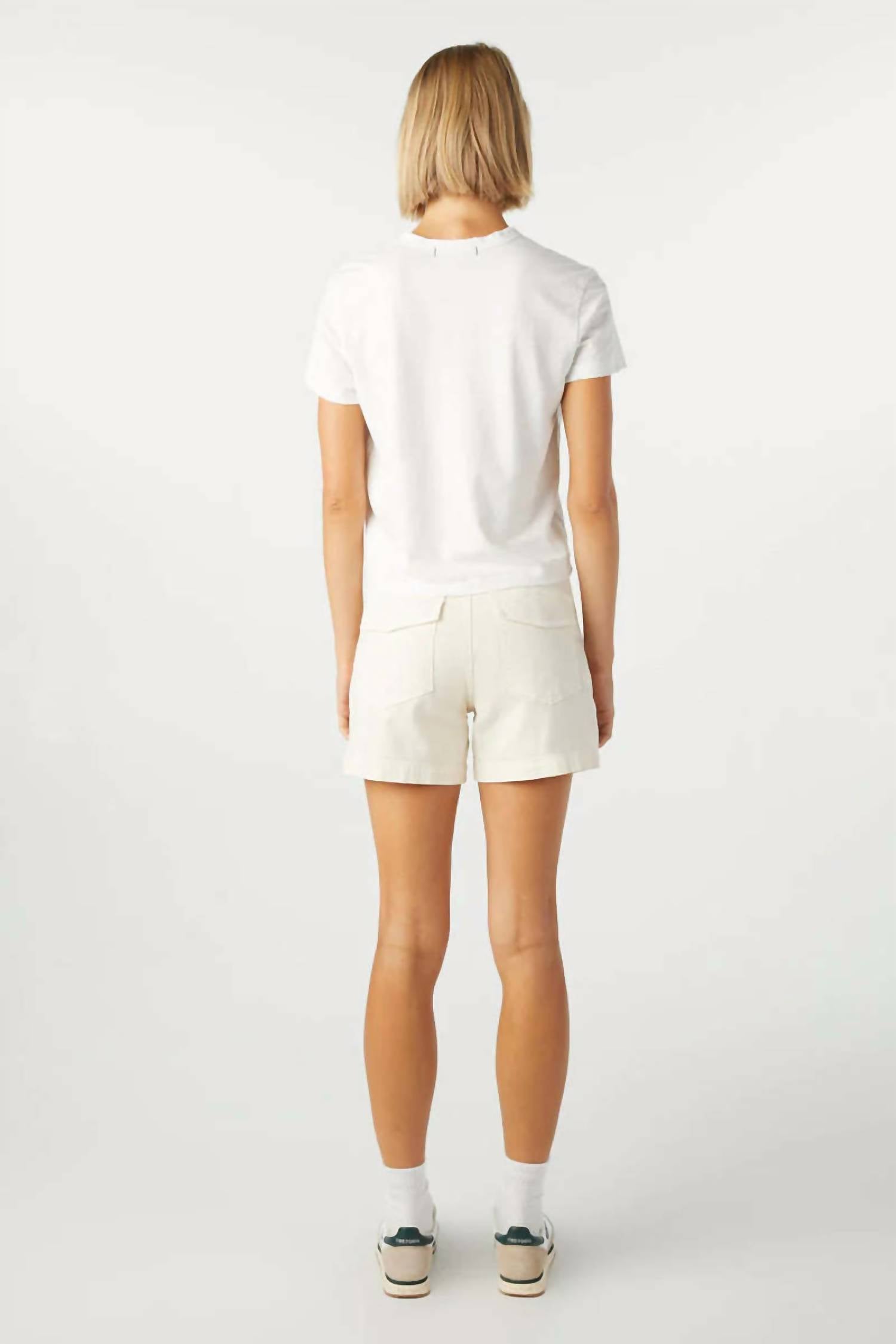 High-waist is here to stay and we especially love this style short. Discover the Easy Army Short by AMO, a chic addition to your wardrobe in a neutral bone hue. Crafted from a cotton blend composed of 70% Cotton, 29% Lyocell, and 1% Elastane, these shorts provide the perfect amount of stretch with a high waist fit for a relaxed, minimalist style. Made in the US, they feature utilitarian back and front patch pockets and a zip closure, with a practical inseam of 4.5 inches. For care, simply machine wash them to maintain their effortless charm.