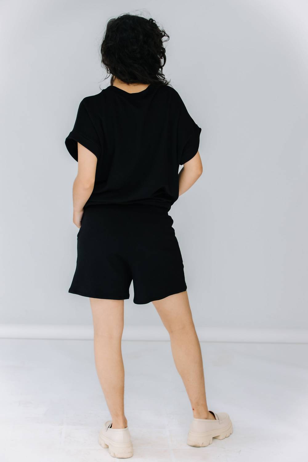 High-waist is here to stay and we especially love this style short. Discover the Corinne Collection Sienna Waist Band Shorts, a chic and minimalist essential perfect for summer vacations. These high-waisted shorts in solid black are meticulously crafted with 70% cotton, 27% spandex, and 3% French terry for a comfortable fit. Designed by Susan Park in Los Angeles, CA, they feature a convenient pull-on closure and practical pockets, complemented by a 2" waistband. To maintain their quality, we recommend hand washing and air drying. Measurements: Front rise 13" and leg opening 12.5" for a size small.