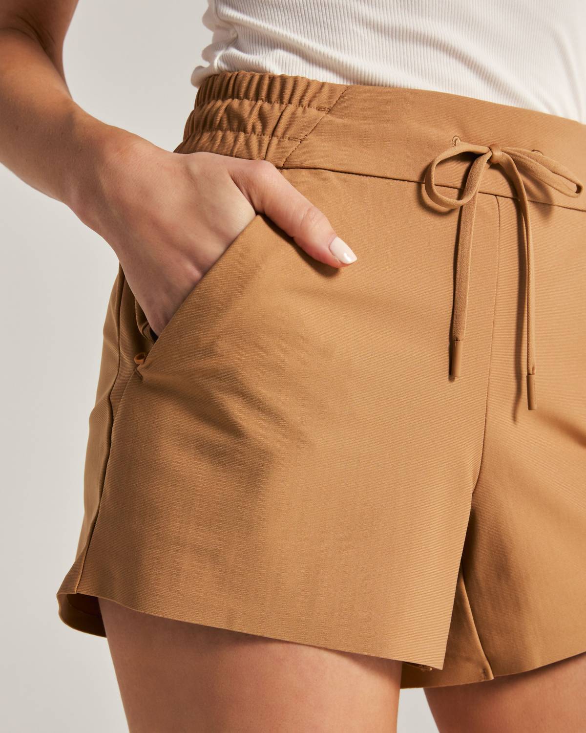 Tuck your favorite tee into these high-waist shorts for a more casual-cool feel. Discover the Pull On Infinity Short by 7Diamonds in a chic shade, perfect for minimalist summer fashion. Designed for women, these high-waisted shorts feature a convenient pull-on closure and a comfortable elastic waistband with dressy drawcords. The solid polyester composition ensures a polished appearance with practical details like hidden zipper pockets and back welt pockets. With a 3.5" inseam, you can enjoy easy maintenance as they're machine washable and can be tumble dried on low. Model is 5'10" and wears size 27.