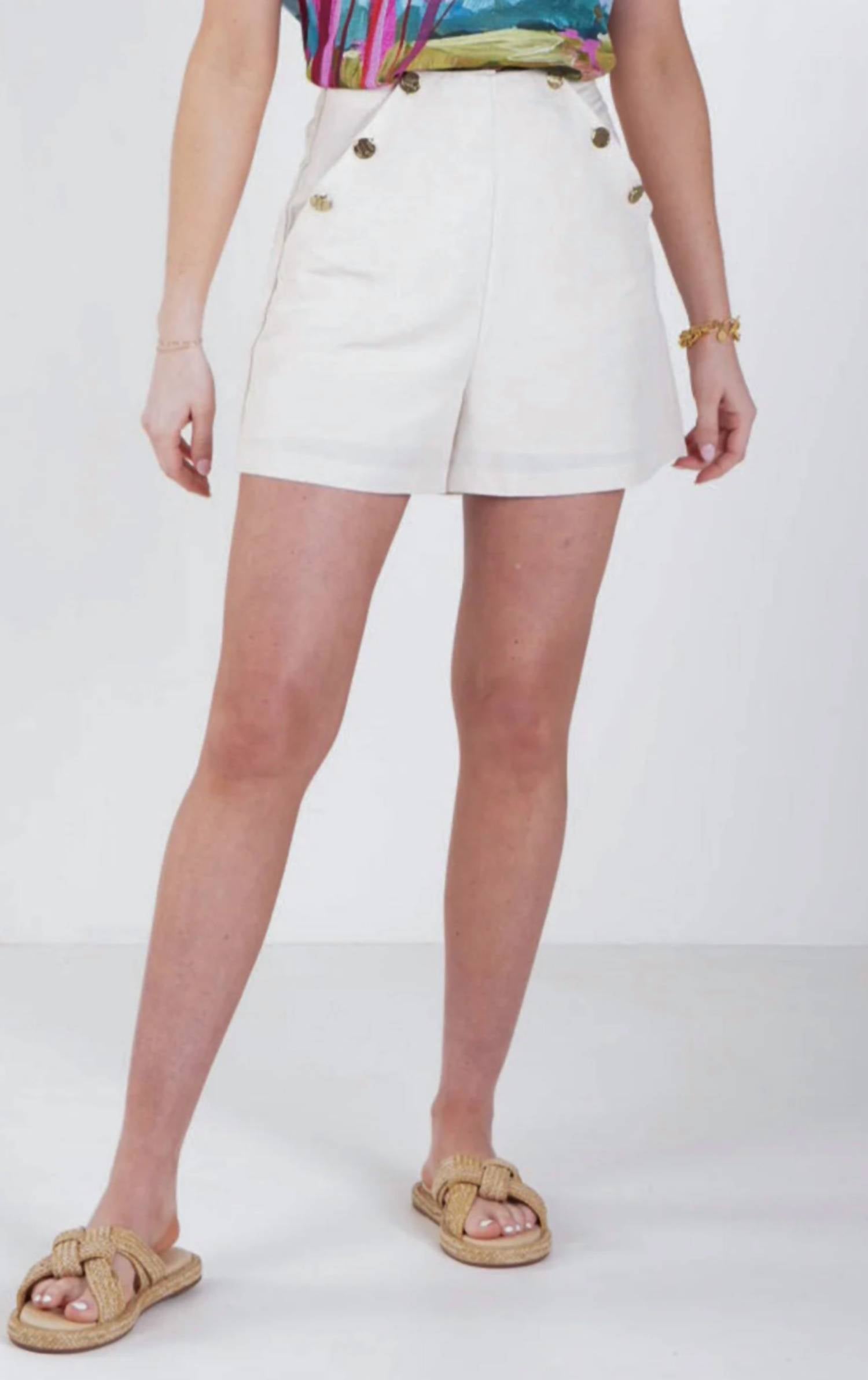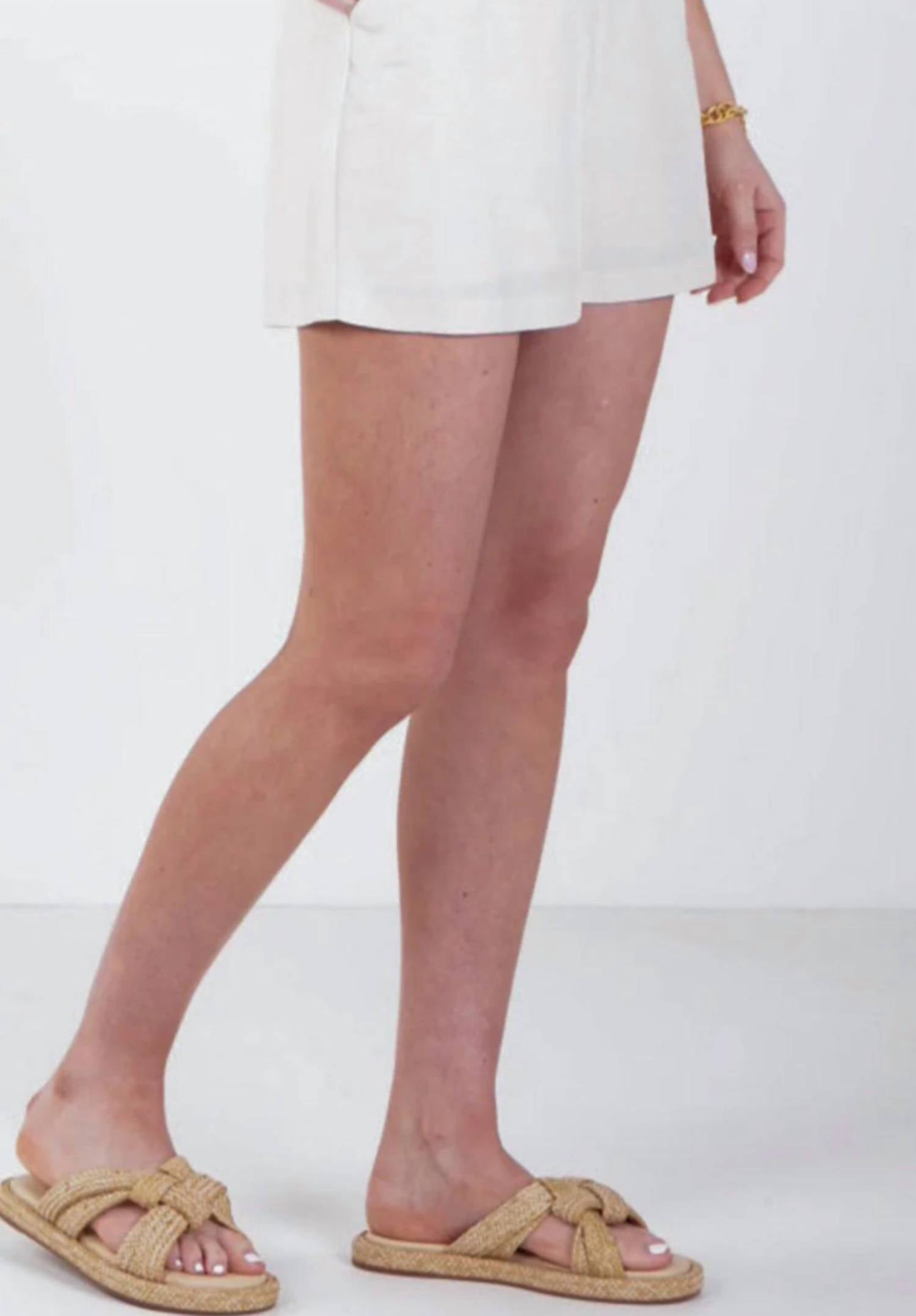 Fit to perfection, we love these high-waist shorts and you will too. Elevate your summer style with the Saylor Linen Short by Emily McCarthy, crafted from a luxurious blend of 70% Rayon and 30% Linen. Featuring a chic high-waisted silhouette and a sophisticated double button closure, these shorts are versatile and stylish in the shade Birch. A breathable design with convenient pockets, it's lined with 100% Polyester for added comfort. Dry-clean only, and spot clean with cold water using a white cloth when needed. Model Emma, standing at 5'10", wears an XS.