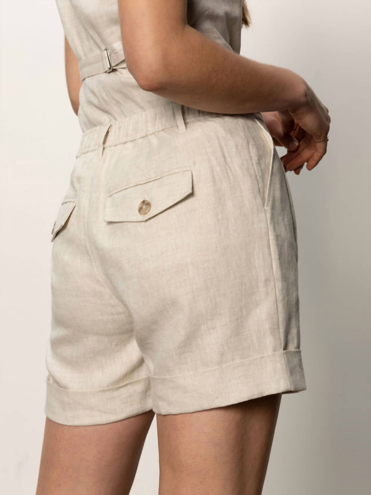 High-waist is here to stay and we especially love this style short. Embrace summer style with the Caravan Cuffed Short by Sanctuary, crafted from 100% Linen in a versatile Flax color. These women's shorts feature a sustainable design with a semi-high rise, relaxed fit, and non-stretch fabric, ensuring both comfort and a stylish drape. Equipped with pleat front detailing, two front pockets, two back pockets, and a button/zipper closure, they offer functionality without sacrificing fashion. For care, simply hand wash cold and hang to dry, perfect for your vacation wardrobe.