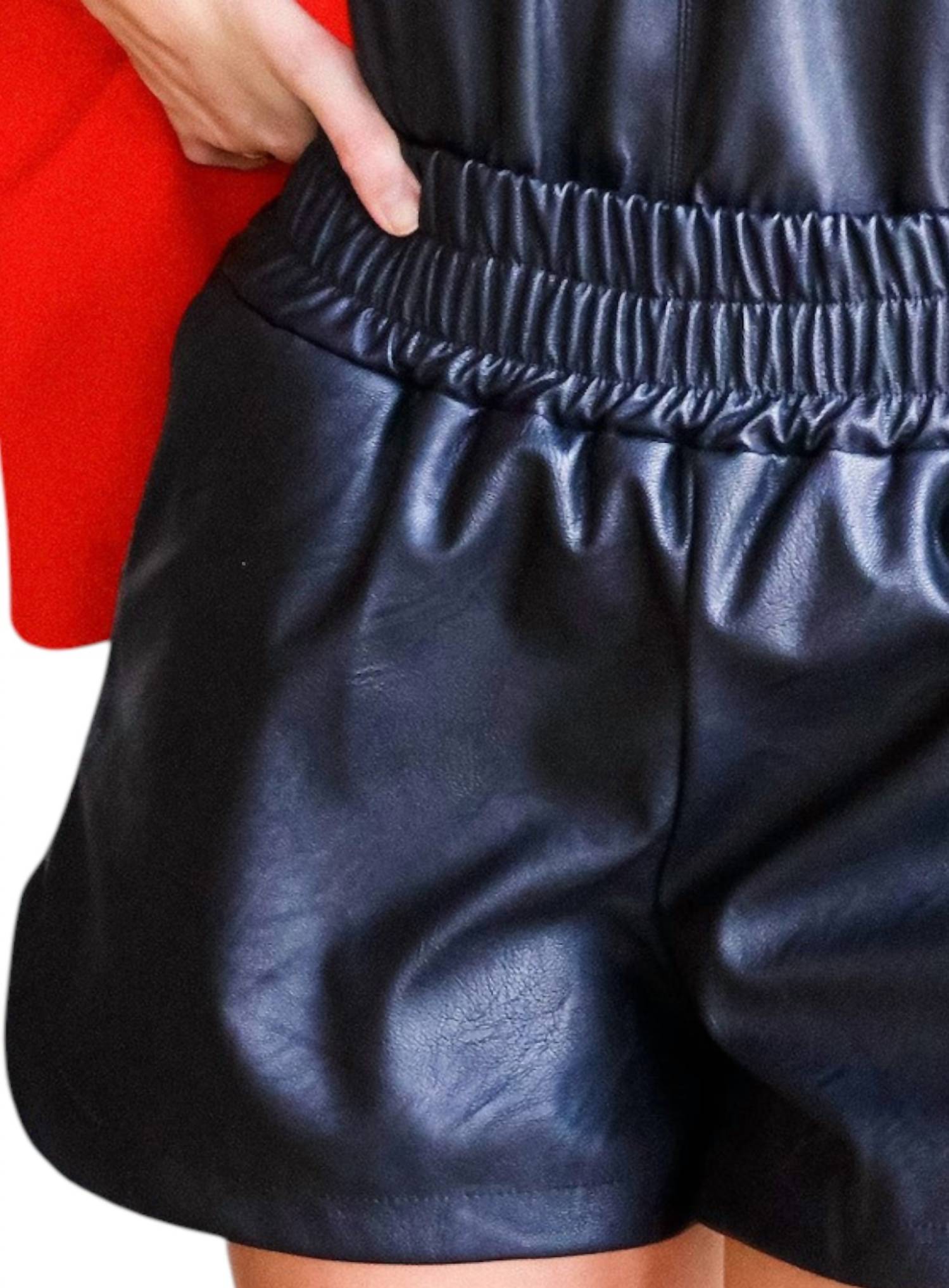 Fit to perfection, we love these high-waist shorts and you will too. Introducing the Summer Lovin Pull On Short by Sofia Collections, a chic addition to your summer wardrobe. These high-waist shorts feature a shimmering black finish with a solid pattern, making them perfect for any music festival or 90s fashion enthusiast. Constructed with a luxurious blend of 50% PU and 50% rayon, these faux leather shorts are crafted in Italy and designed with a practical pull-on closure. Ideal for day-to-night transitions, these shorts offer a flattering fit with an elastic waistband and come with pockets for added convenience.