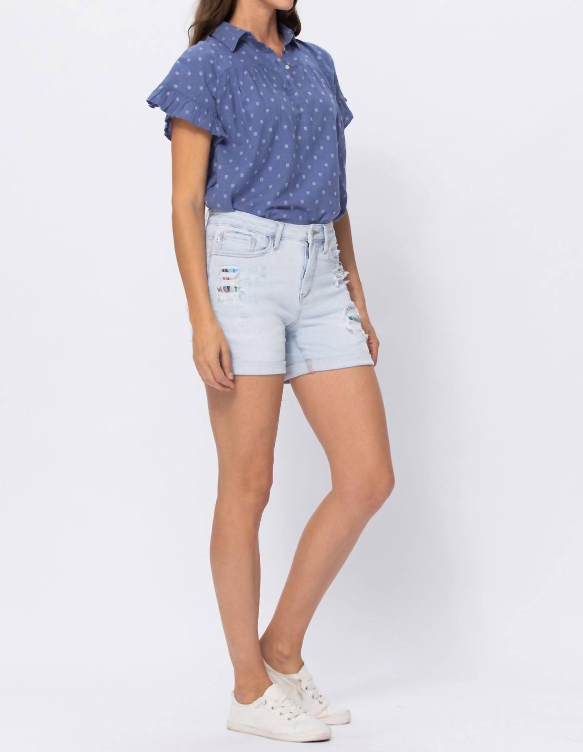Judy Blue - High Waist Cuffed Serape Patch Destroyed shorts