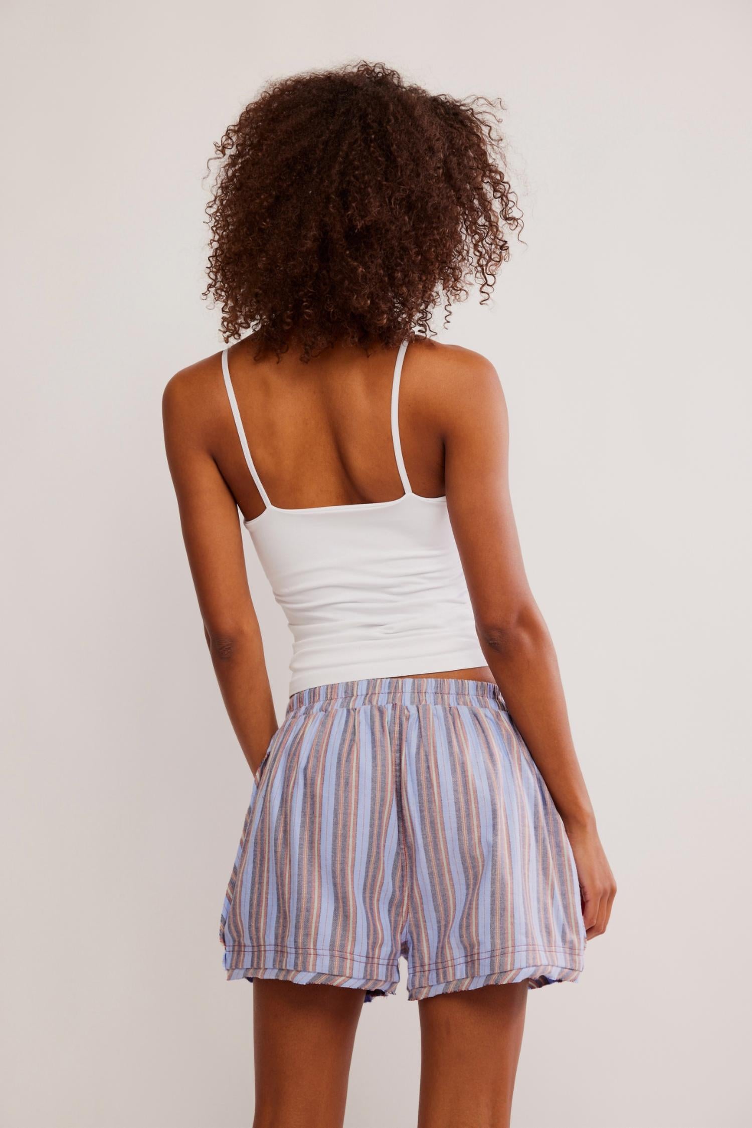 Fit to perfection, we love these high-waist shorts and you will too. Introducing the Day To Day Flannel Boxer by Free People, a chic piece in a striking blue combo stripe pattern. Made from a comfortable cotton-lyocell blend, these high-rise, mini-length shorts feature an elastic waistband with a logo tag and side pockets for added convenience. Style effortlessly with a pull-on closure, offering a laid-back charm for vacation-ready attire. Care involves machine washing and laying flat to dry, ensuring they remain a staple in your wardrobe. Model is wearing a size small (5'6" height, 35.5" chest, 27" waist, 36.5" hip, 29" inseam).