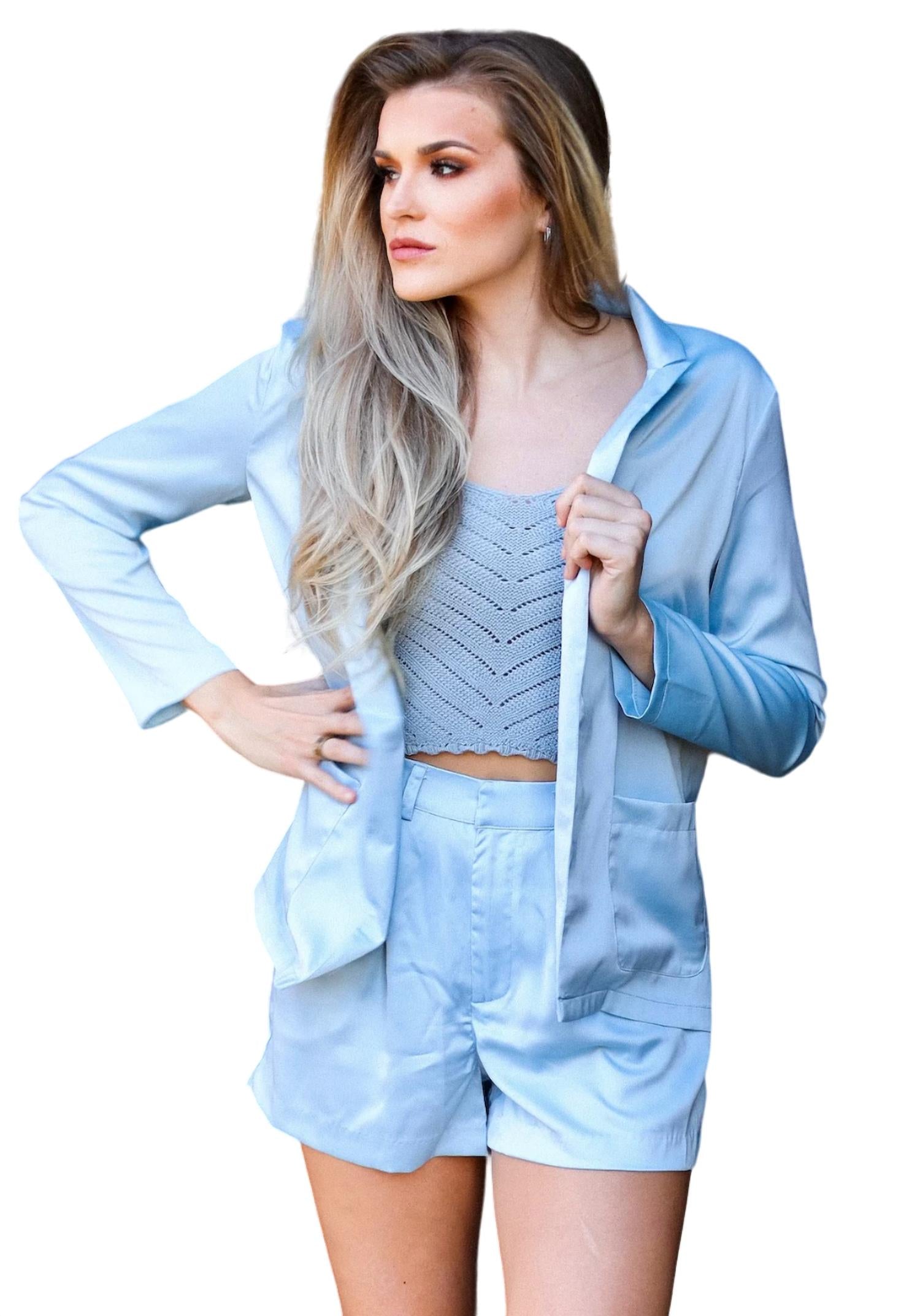 These satin shorts give an effortless sophistication to any outfit! The shorts are high-waisted and beautiful pop of color, perfect for the warm weather. Material composition: 97% polyester, 3% spandex. The model is wearing a size small. Care instructions: machine wash cold. Tumble dry low.