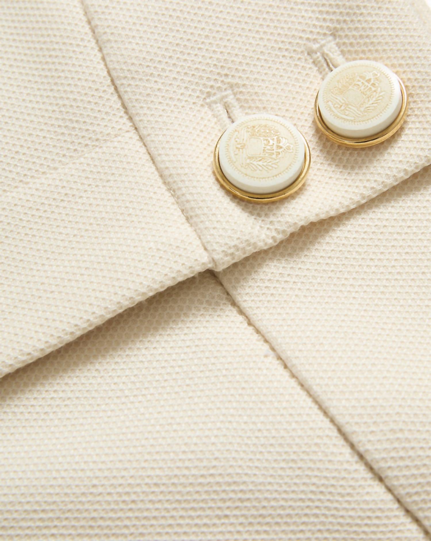 Tuck your favorite tee into these high-waist shorts for a more casual-cool feel. The Devina Shorts by Veronica Beard are a sophisticated addition to your summer wardrobe, offered in a chic ecru color. These high-waisted shorts are crafted from a premium blend of 55% Lyocell, 42% Cotton, and 3% Elastane, and feature a stylish A-line silhouette with practical side slip pockets. The double button and fly zip closure ensure a tailored fit, while the 100% Polyester lining adds comfort. For optimal care, dry clean only with buttons covered.