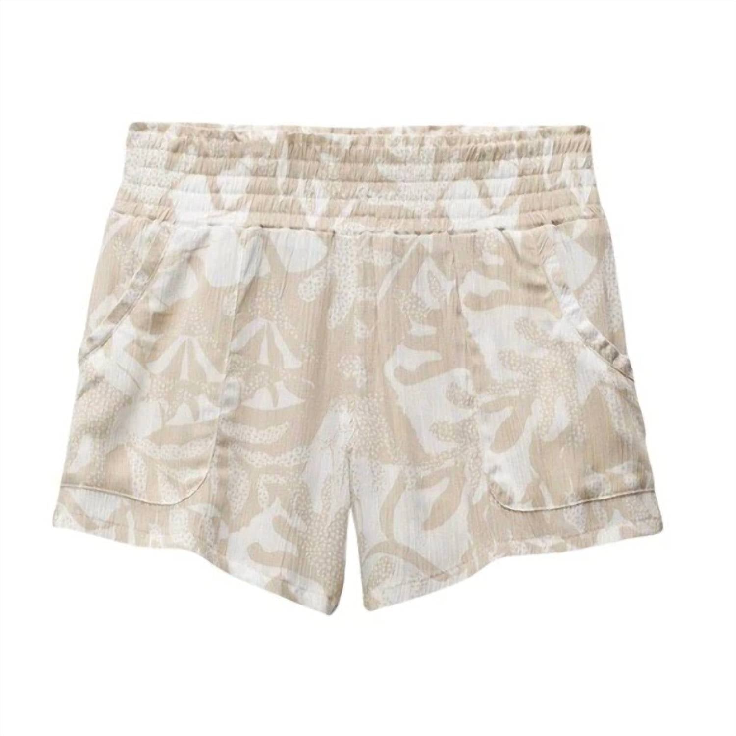 Fit to perfection, we love these high-waist shorts and you will too. The Fernie Short by prAna in Soft White Seaside is your go-to for boho chic beach days with its relaxed fit and patterned design. These mid-rise pull-on shorts are crafted from 100% Tencel™ Modal, featuring a wide elasticized waistband and both front and back patch pockets for added convenience. The asymmetrical hem adds a unique touch, while the 4-inch inseam ensures comfort and style. Proudly made in India under Fair Trade conditions, these shorts are easy to care for with machine wash instructions.