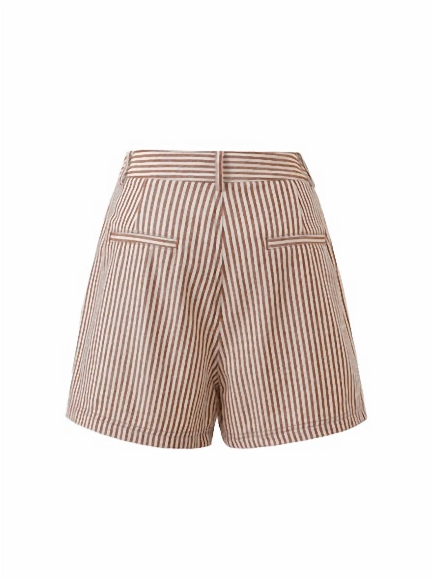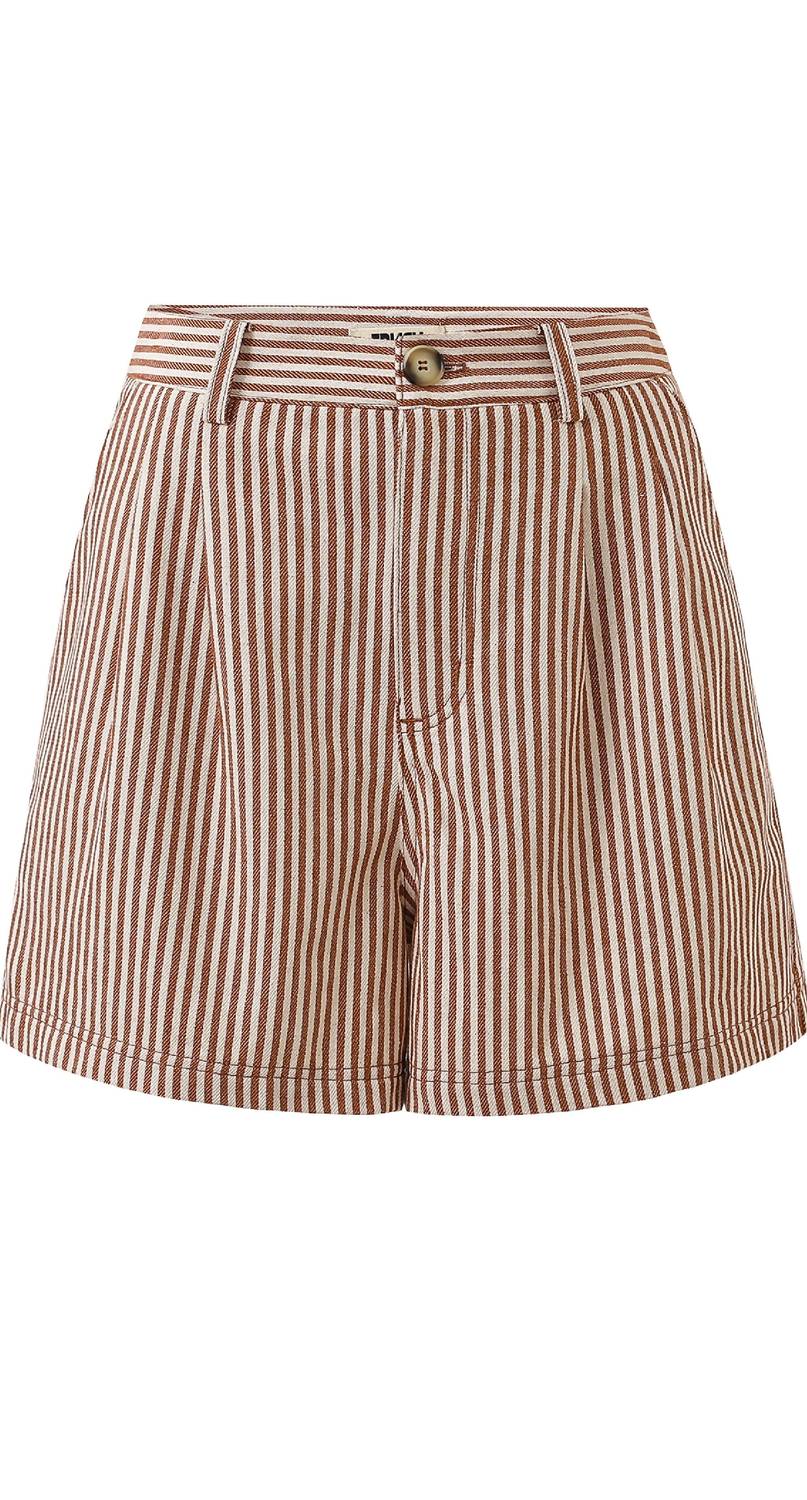 High-waist is here to stay and we especially love this style short. Bring a playful touch to your wardrobe with the Perrette Shorts by FRNCH, featuring a vibrant stripe pattern in a bold Brique hue. These high-waist shorts are crafted from 100% Cotton, offering both comfort and style for any occasion, including prom. Designed with practicality in mind, they include pockets and feature a convenient zip closure. Care is simple with machine wash cold on a gentle cycle, making them an easy addition to your outfit rotation.