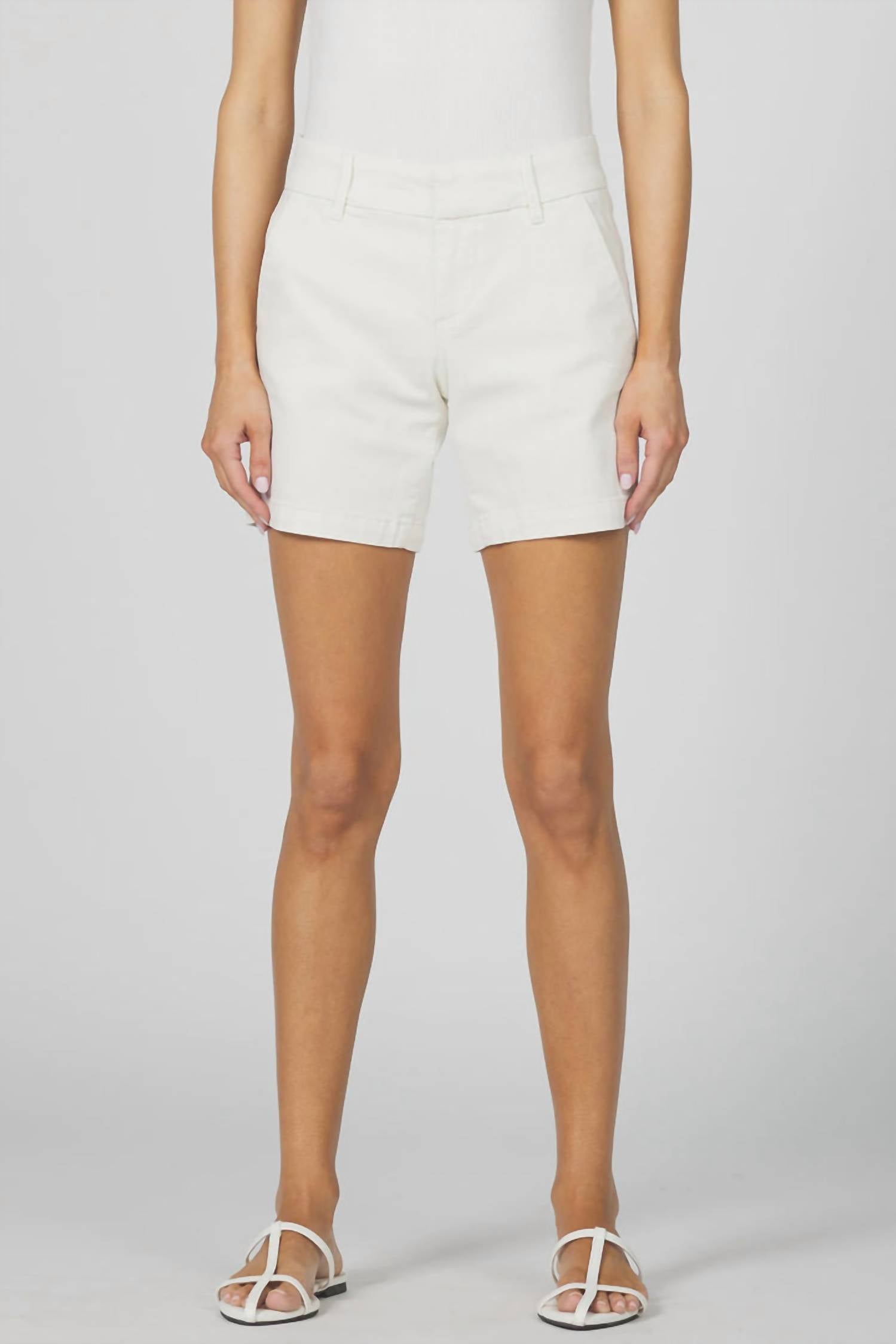 High-waist is here to stay and we especially love this style short. Enhance your summer wardrobe with the South Hampton Shorts by DEAR JOHN DENIM, crafted in an elegant ivory shade for a minimalist and stylish look. Designed with a high waist, these shorts are made from a comfortable cotton blend and feature a practical hook and eye closure. With a 7" inseam, these solid-patterned shorts are perfect for vacation and provide added convenience with pockets. Ideal for summer days, these versatile shorts are an essential addition to your collection.
