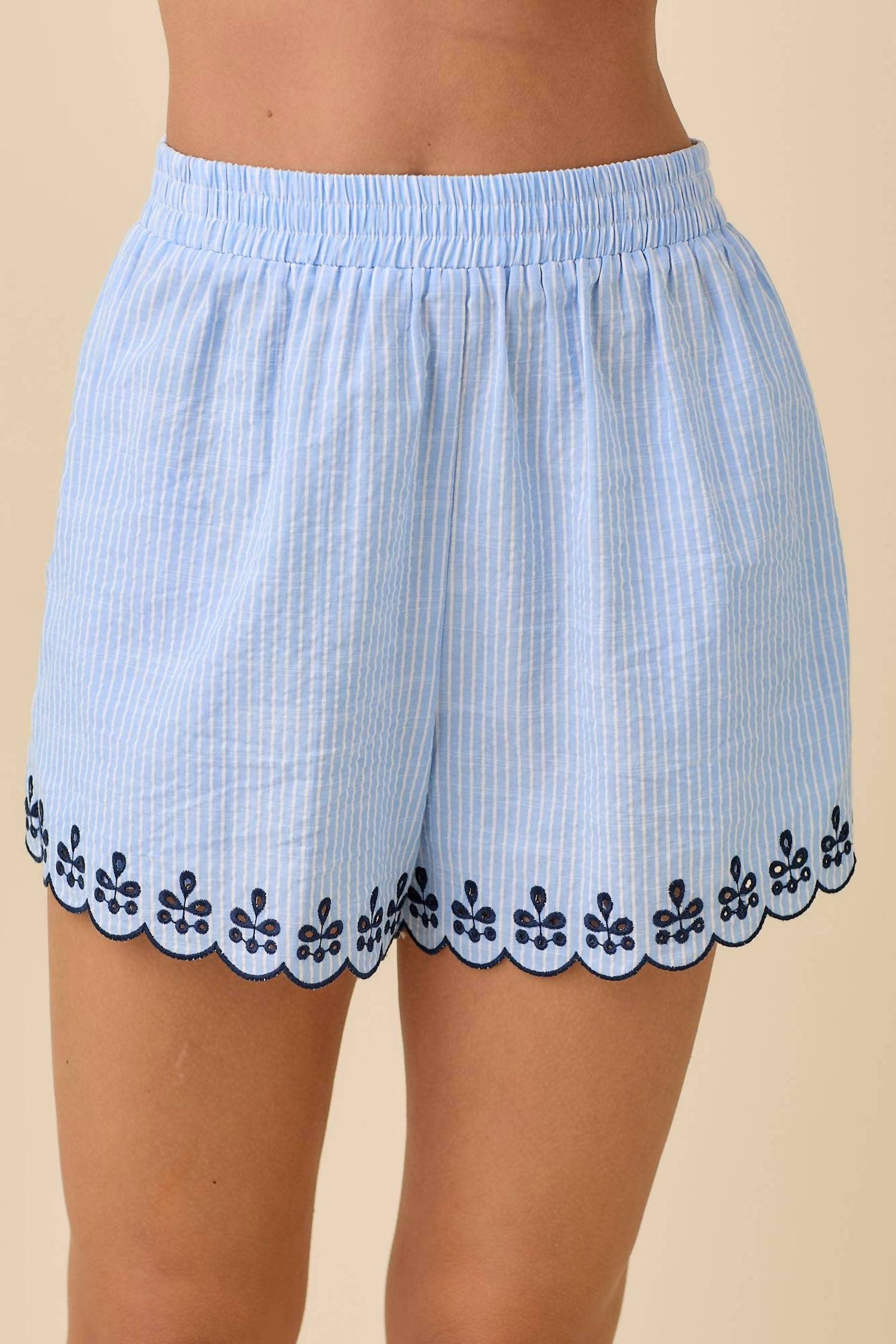 Main Strip - Deena Striped Shorts With Scallop Embroidered Hem Detail